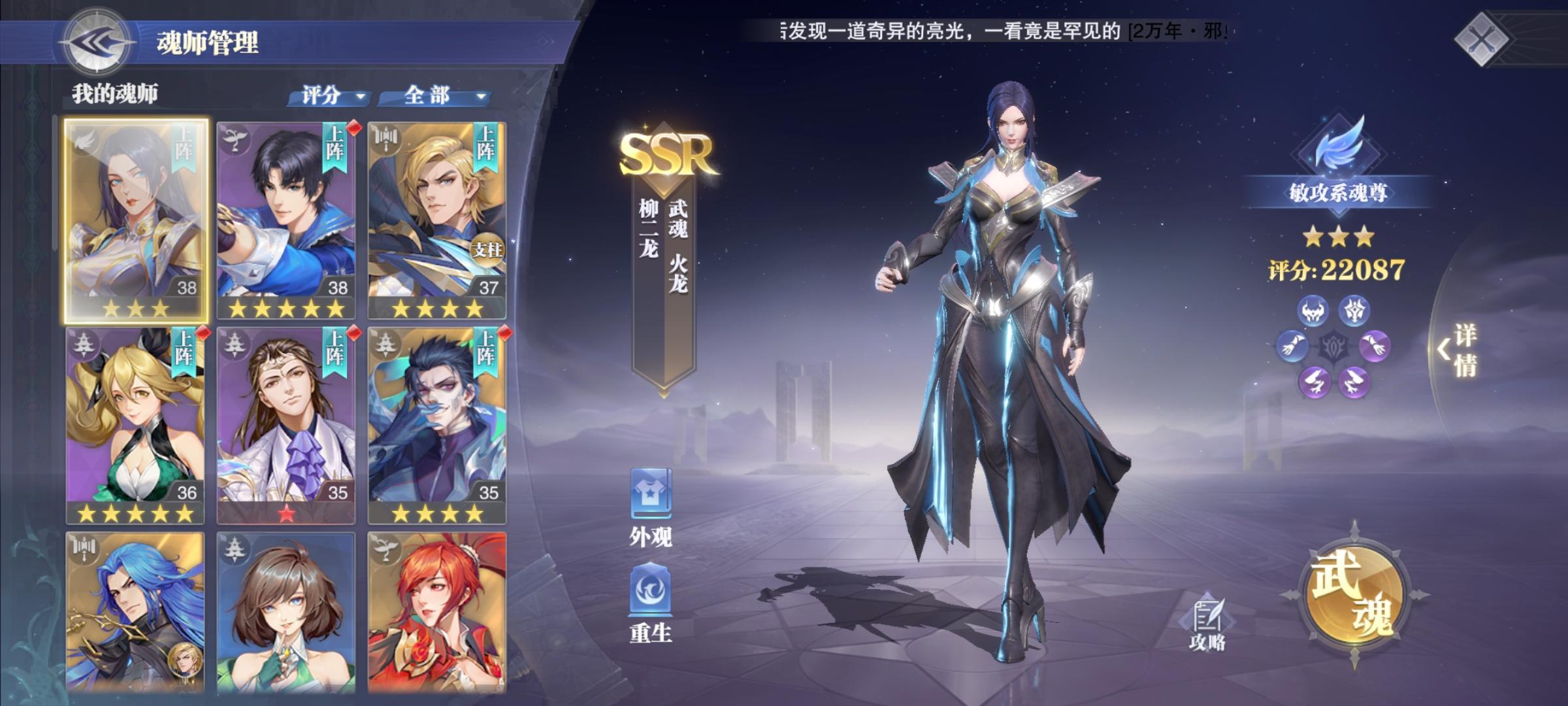 玩这个游戏的第八天,我想问问大佬们我要不要换掉人上荣荣,还有大致的角色魂环配比,21天自选要不要换小胖