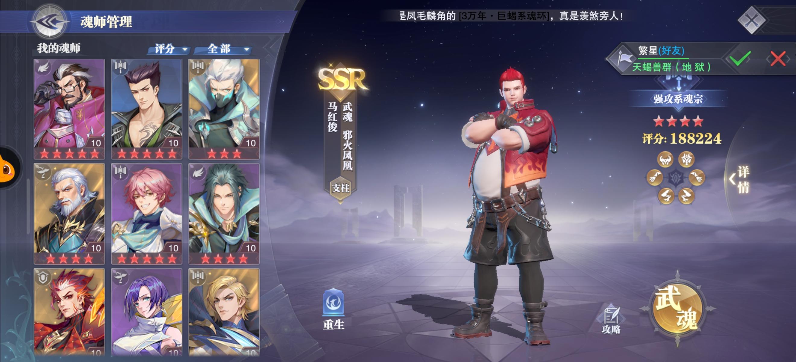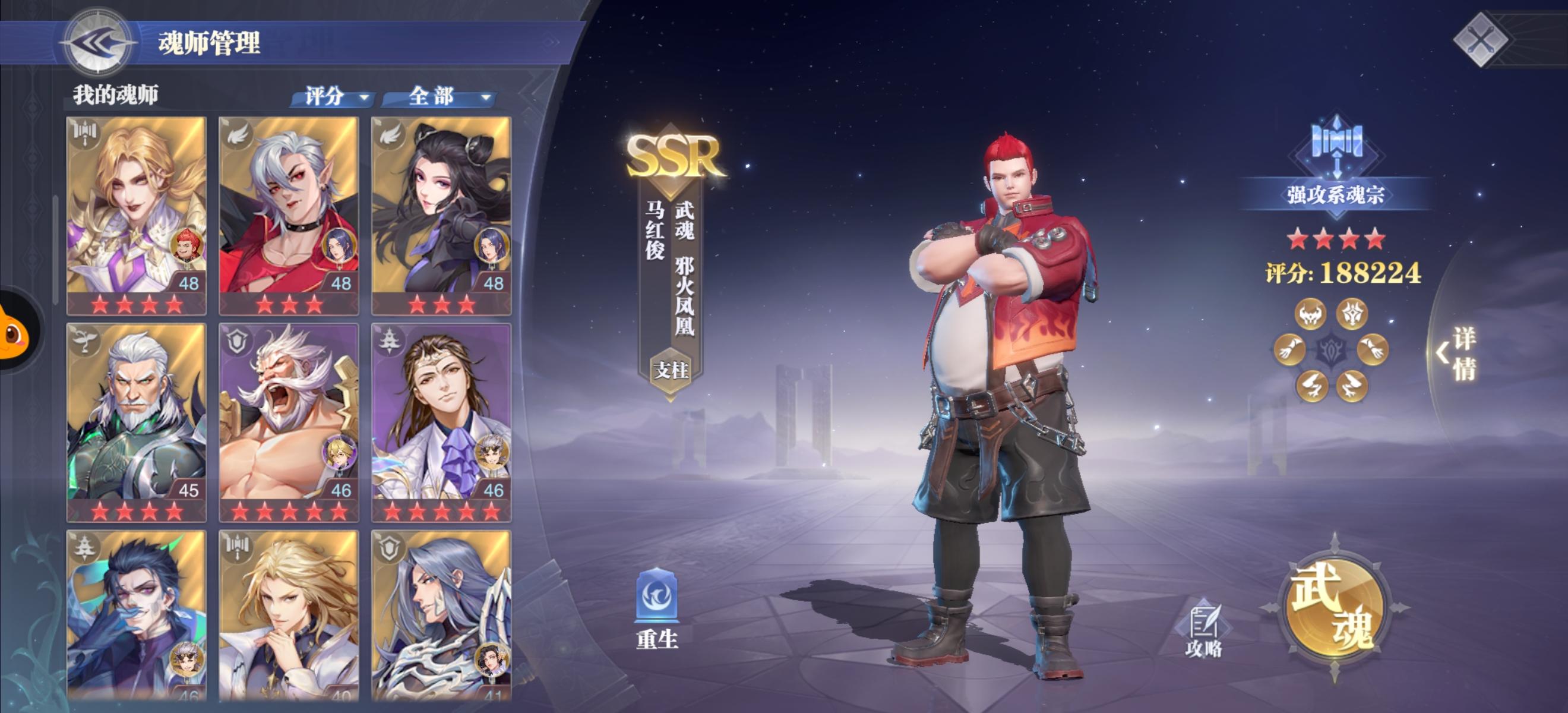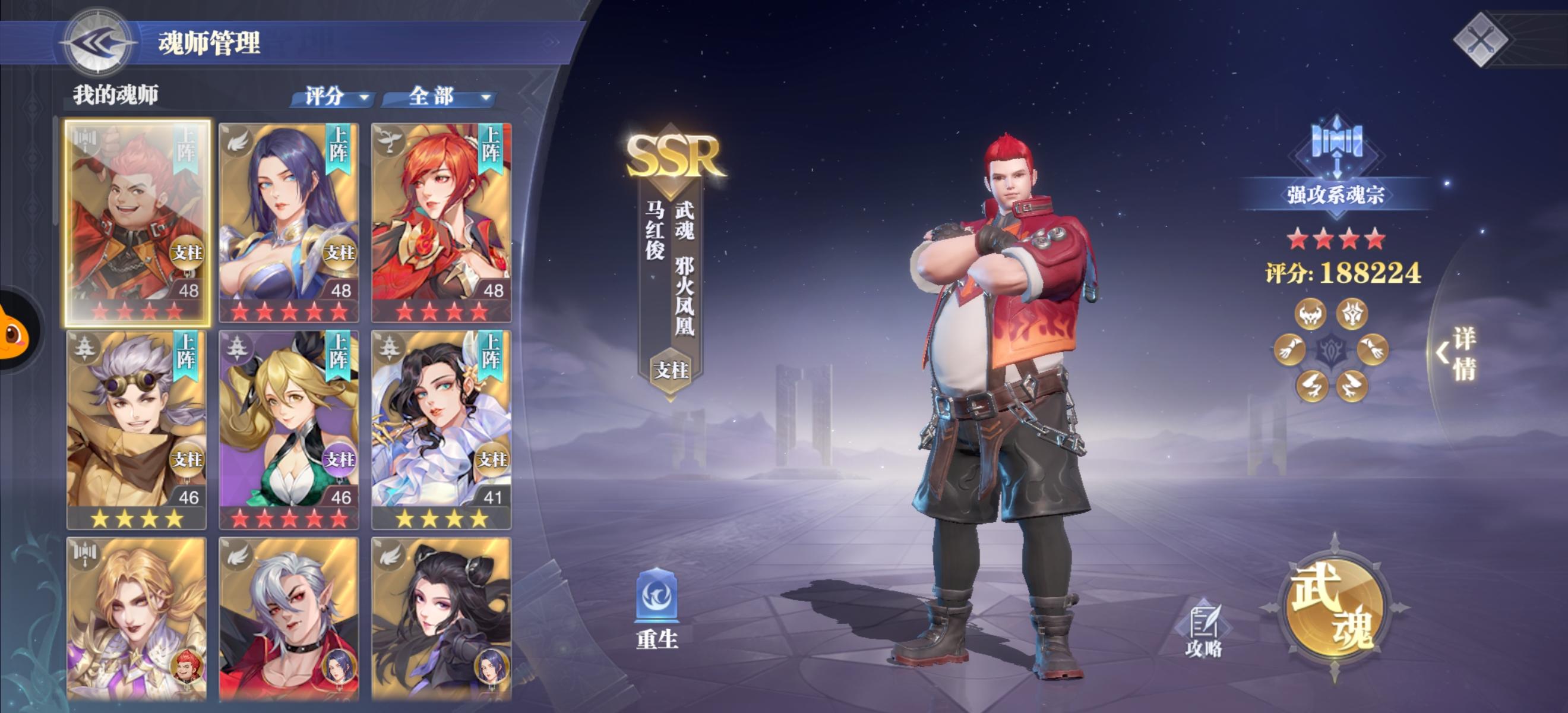 哪位大佬帮忙看下阵容,要怎么配个厉害点的。我魂师需不需要更换,目前大部分是红四红五。没有唐昊,荣荣,胡列娜