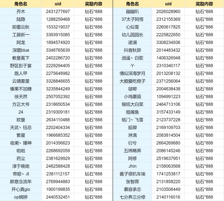 🎉欧神降临,福利到!晒出你的欧皇时刻话题活动中奖名单公布啦!快看看幸运儿有没有你~*注:奖励于7个工作日内进行发放,请留意游戏内邮件通知~*为了活动的公平性,本次随机抽选已剔除无关帖子以及无效帖子内容