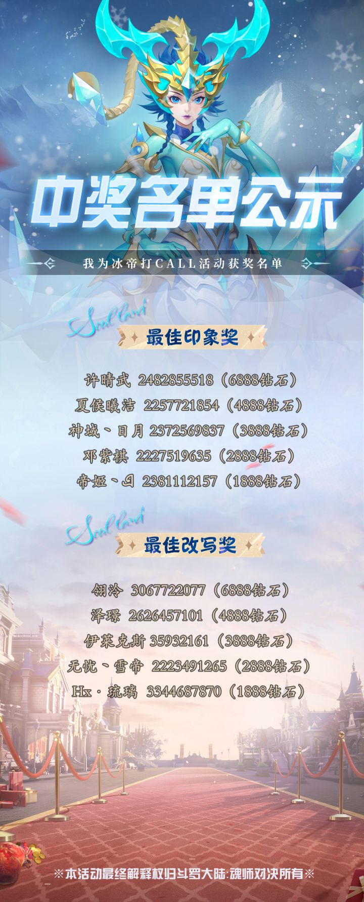 中奖公示 | 我为冰帝打call中奖名单公示