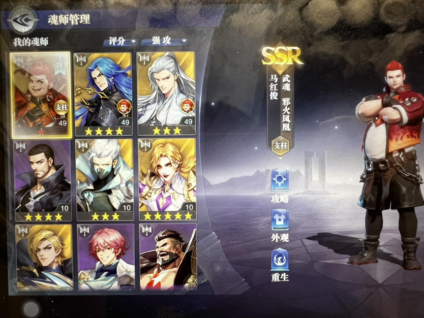 21天ssr自选特殊情况在前三篇中,给大家建议了选择SSR魂师需要搭配已拥有的魂师进行选择,但是相信很多玩家缺的不是一个两个,那么那怎么抉择呢?① 宁奥抉择相信大家基本上宁奥都没有,或者鬼魅没有。下面推荐这种情况这样选择。Ⅰ、√宁风致红二星;×无宁荣荣、奥斯卡、鬼魅选 宁荣荣∵ 宁风致的辅助机制不比奥斯卡和鬼魅差,在魂力回复这方面完全可以独挡一面,Ⅱ、√有四星白沉香;×宁风致低星,无