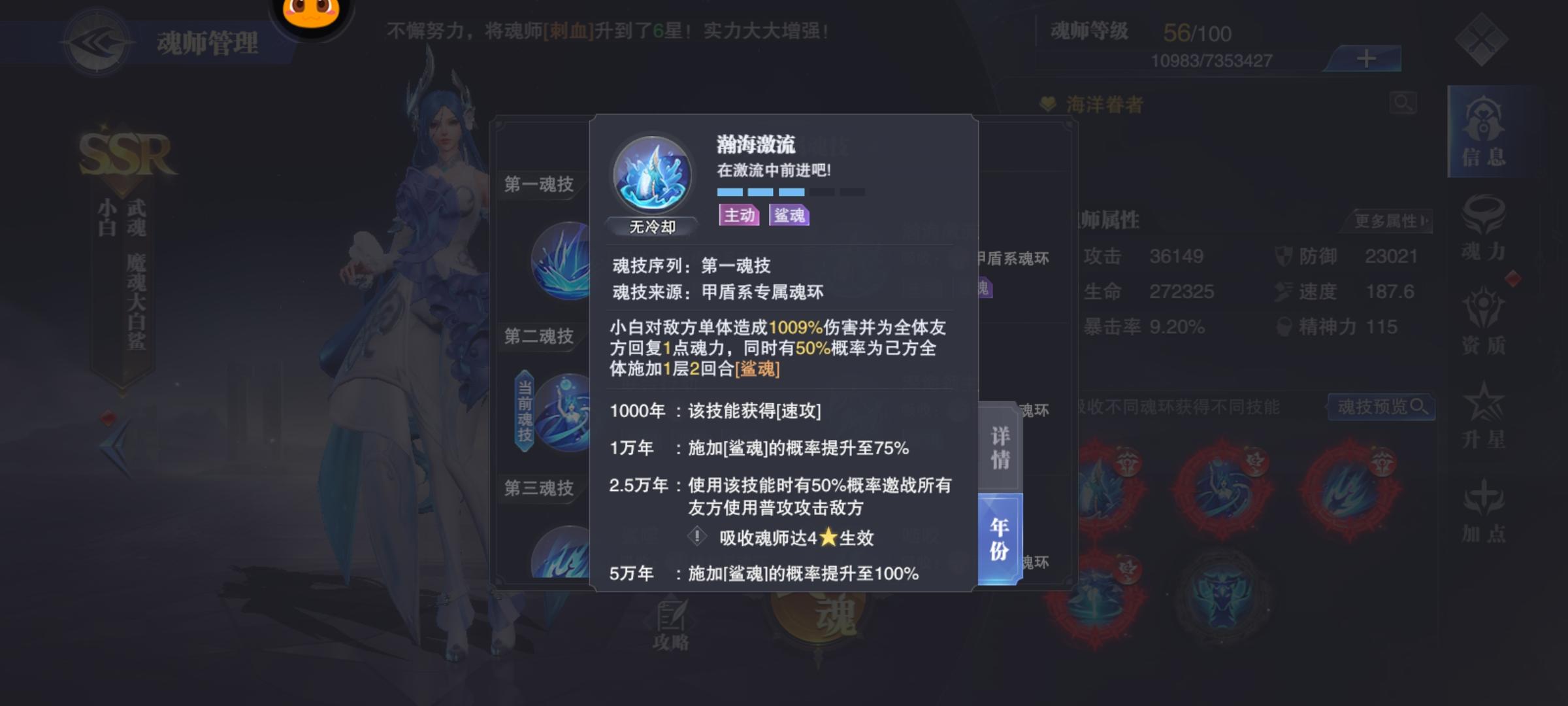 魂师定位:SSR辅助系魂师,具备增加己方魂师攻击力,回魂,增伤,驱散,推进,回复自身生命值,在长图pve和pvp中表现十分出色,是不可或缺的魂师之一。