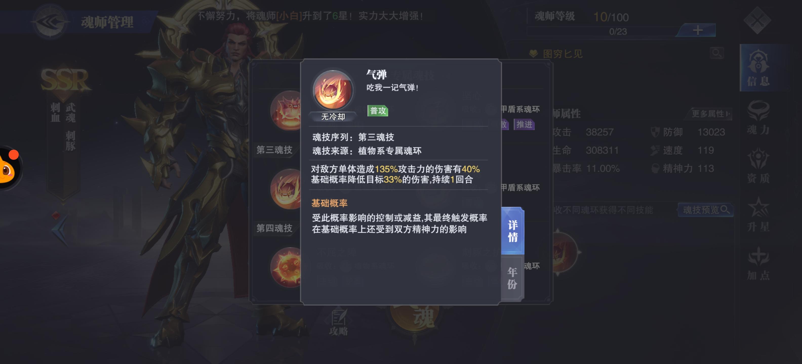 植物系第三魂技:单体伤害,有40%概率降低目标33%的伤害