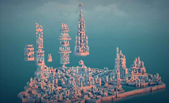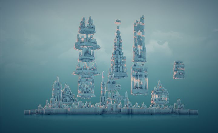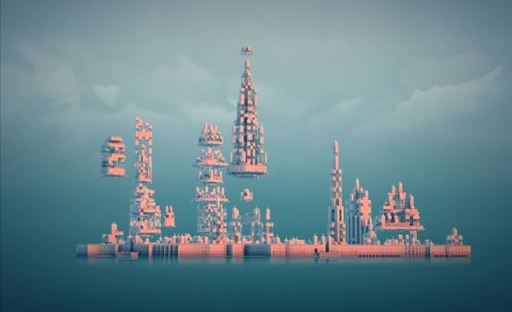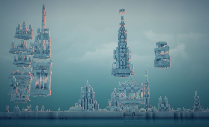 盾牌形的也可以。如果浮空城离得近又能找到不会生成脚手架的通道的话,可以合并起来,这样就造出了形状不规则的浮空城!