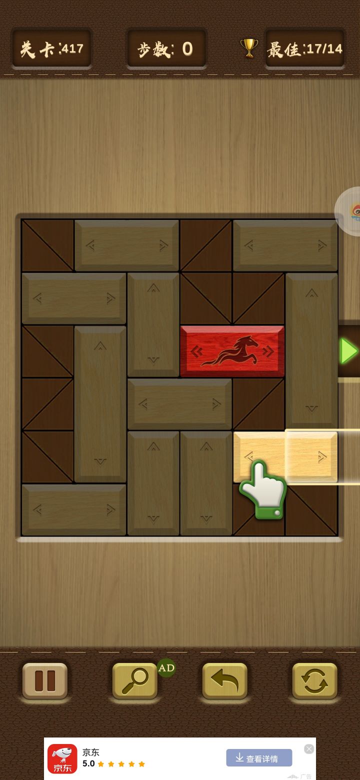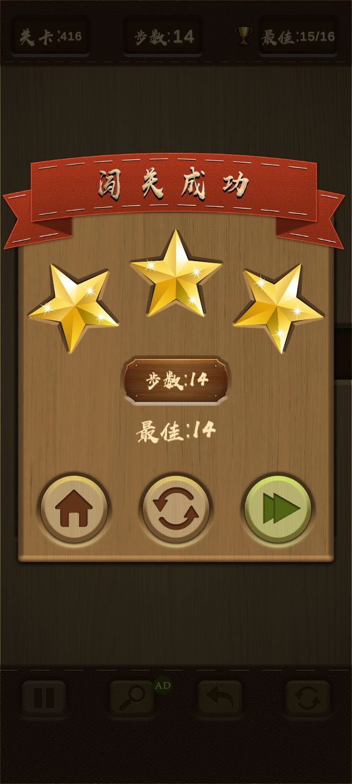 提交bug第417关无法三星,本人绞尽脑汁也只有16步,看了看广告寻求答案发现bug,不知是否有人三星