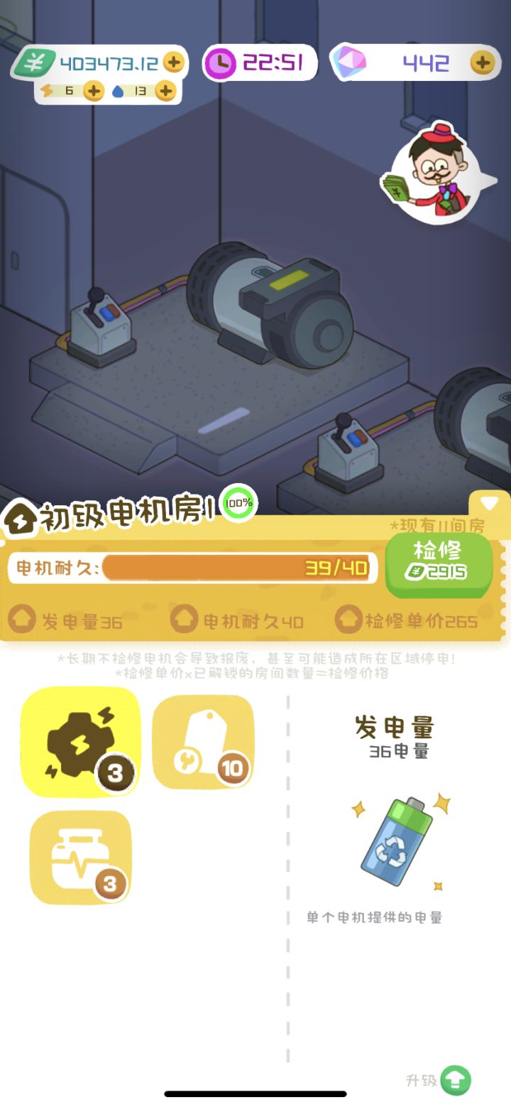 (注意.电机是你必须关注的,不检修电机会报废,也就是会停电,停电就没有收益)