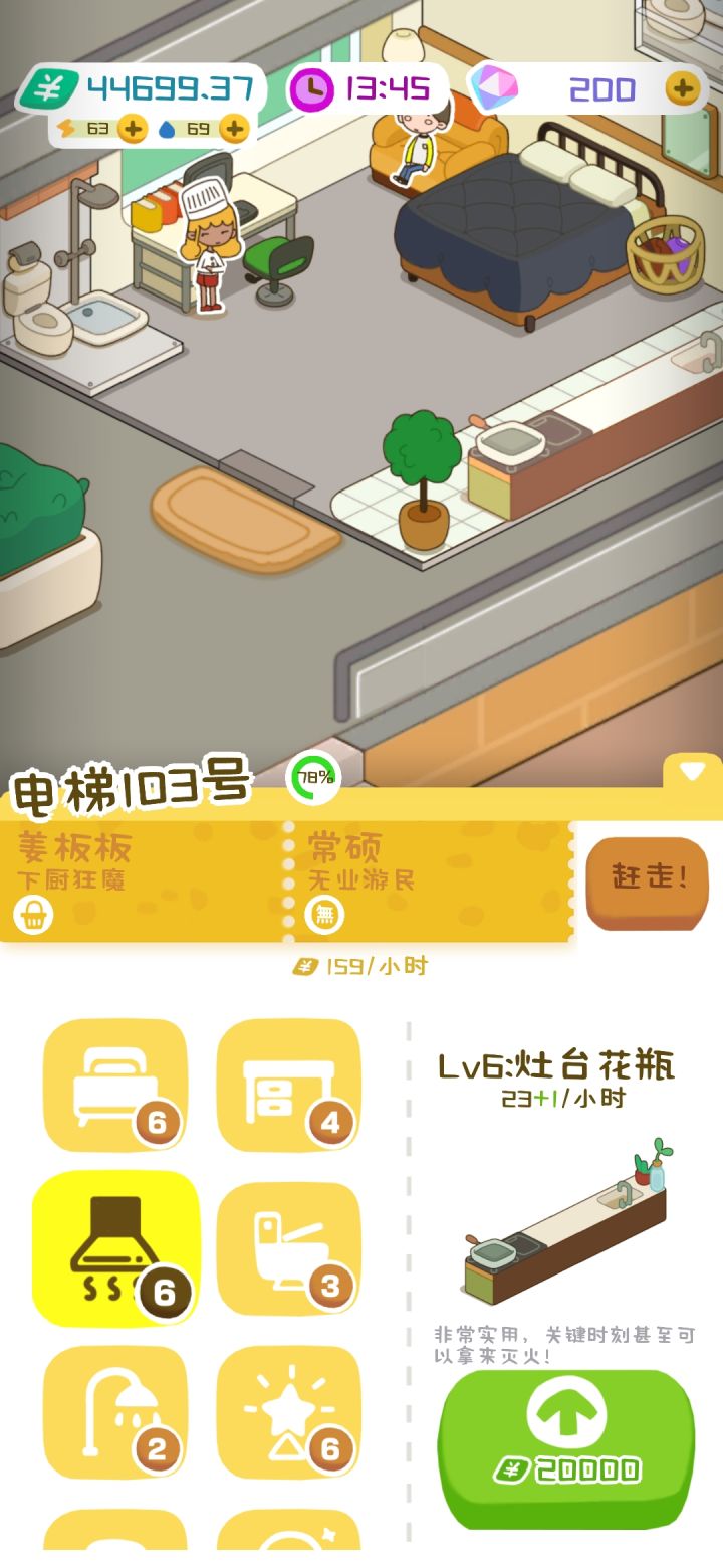 广告突然看不了了,窝火~我好不容易耐住性子。为什么要分大小区域?最后都要升级,不是多此一举吗?小菜摊升级不了,我只能把需求菜篮子的都赶走了,那样的话建小菜摊就没啥用了,鸡肋设定。。区域应该是同样大小,然后选择建大建小。不能氪金买钻也很急人。😖