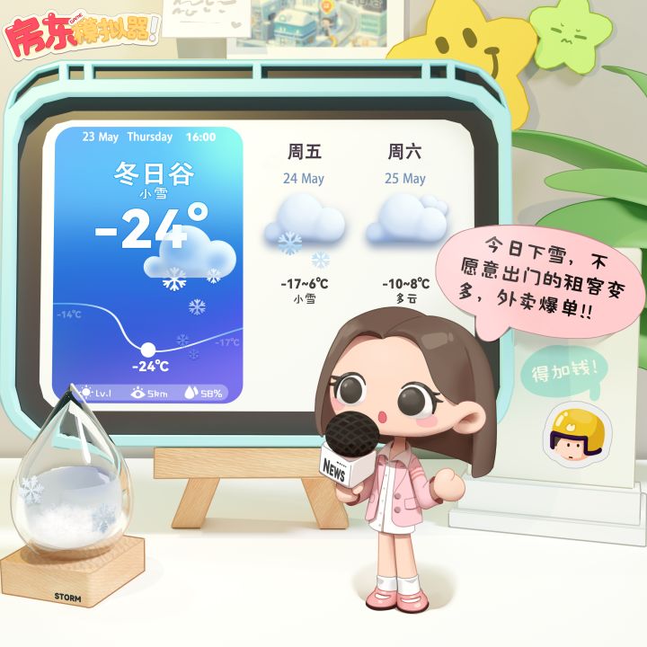 ❄️包租婆今天为大家带来新地图的天气预报,以及一些令人兴奋的全新玩法!🚴♂️大雪天气下,房客们更愿意待在温暖的家中,外带订单暴增~🥰是时候展现各位小房东们的配送技巧了!😄请随时关注官方TapTap平台,敬请期待全新地图的更新吧!(目前正式包正在商店审核阶段,审核通过后小房东们就可以第一时间体验到啦!)❤欢迎各位小房东加入官方Q群参与讨论~#房东模拟器