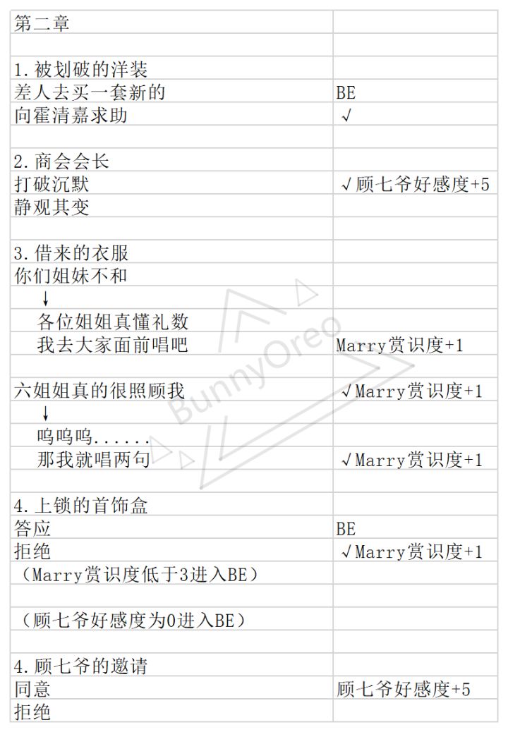 七爷和威廉上线~ 本两章又名:与四姨娘和六姐斗智斗勇的机灵鬼~【注意】图片中打√的都是必选项,两个选项都是空的是该选项对结局没什么影响,就是给的剧情画面不一样,都可以选哈~【PS.】最后还是建议小伙伴们非必要最好还是自己快乐游玩(逃脱魔爪),游戏中很多BE也非常有趣,自己试出来的结局会更有游戏体验~【如有误欢迎小伙伴指正!】