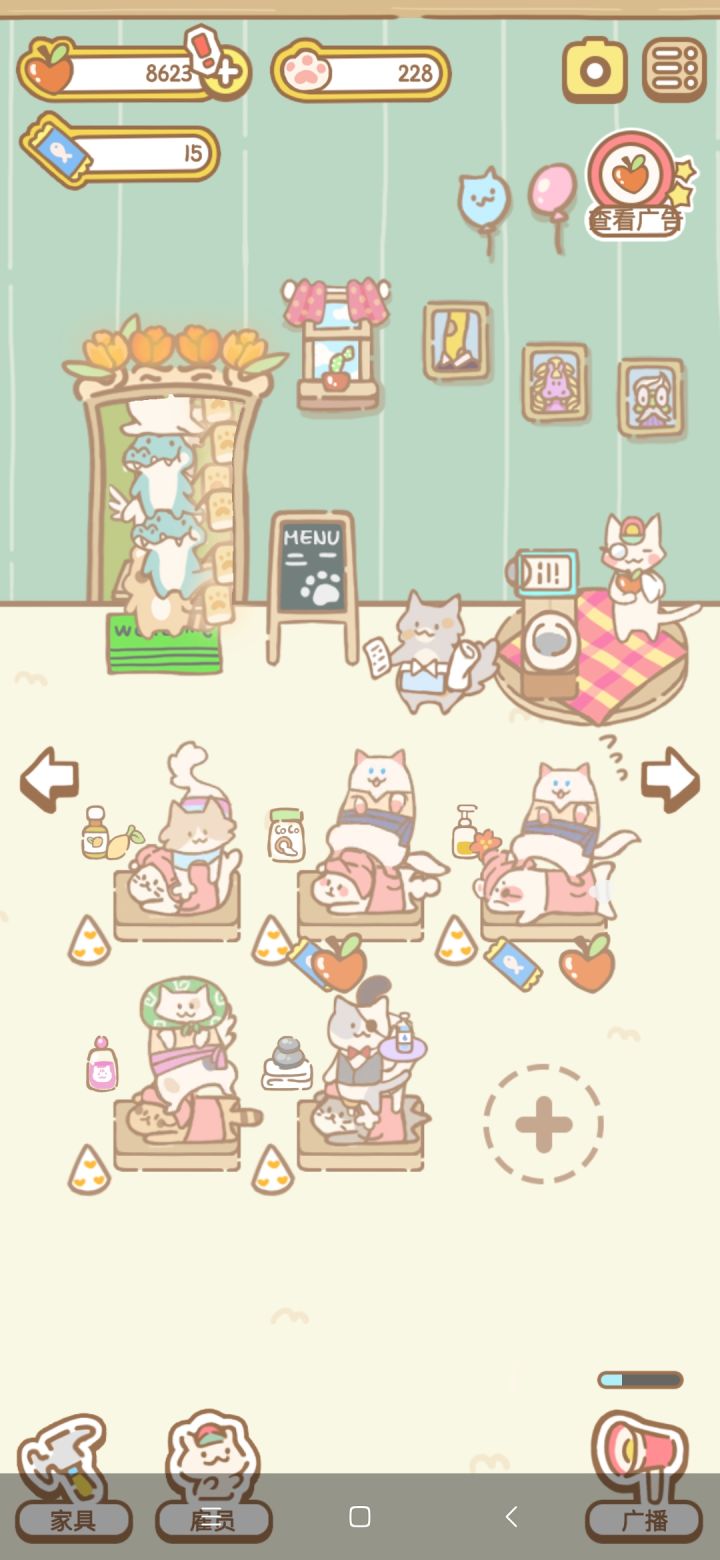 这个游戏画风很可爱,是经营类游戏,猫猫在客人身上一跳一跳地按摩好可爱。就是苹果挣起来太慢了,除非看广告,不然很难解锁美发店。希望苹果赚起来可以方便快速一点。小日常真的太可爱了!