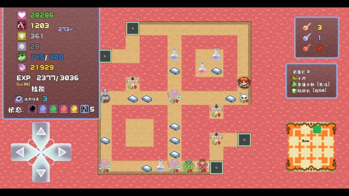 终于过了 游戏种子:65502748 初始奖励等级:10 剑士 ----区域2--- 00:21:02 血量:174/攻击:46 防御:51/魔防:50 金币:256/等级:9 装备:未装备/未解锁/未解锁 未解锁/未解锁/未解锁 钥匙:8/1/1 -------------- ----区域3--- 00:59:05 血量:18691/攻击:230 防御:200/魔防:65 金币:352/等级:1