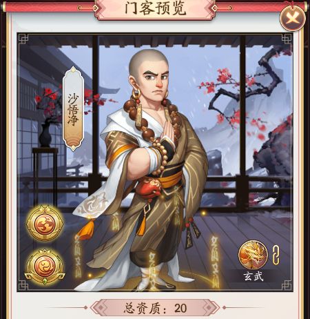 本文首发【大东家攻略组】公众号,未经授权禁止“抄袭文章”转载至其它平台。门客资质今天我们来介沙悟净这个门客,传说中的神话人物,沙僧个性憨厚、忠心耿耿、正直无私,。他的初始总资质是20。接下来我们就一起来看看有那些属性吧资质介绍全力以赴和大力搬运都是增加码头赚速的资质,这里的星级倍数是8倍,大力搬运是6星资质,派遣码头的话会额外的增加10倍的赚钱,一共就是18倍的码头赚速提升。戏目编剧、本