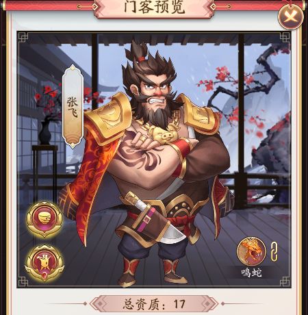 本文首发【大东家攻略组】公众号,未经授权禁止“抄袭文章”转载至其它平台。门客资质今天我们来介张飞这个门客,三国时期最著名的人物之一,军事家、著名将领。他的初始总资质是17。接下来我们就一起来看看有那些属性吧。资质介绍特级厨师和狮吼胃王都是增加食府赚速的资质,这里的星级倍数是8倍,狮吼胃王是5星资质,派遣食府的话会额外的增加2倍的赚钱,一共就是10倍的食府赚速提升。保险专员,商界奇谈和典当有