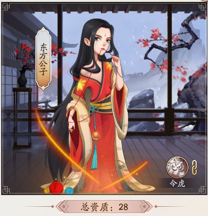 本文首发【大东家攻略组】公众号,未经授权禁止“抄袭文章”转载至其它平台。门客资质今天我们来介绍东方公子这个门客,他的原型是东方不败这个人物,他的初始总资质是28。接下来我们就一起来看看有那些属性吧。资质介绍衣品一流、国潮传人。精雕细啄和布艺精湛都是增加布庄赚速的资质,这里的星级倍数是16倍,布艺精湛是7星的资派遣布庄额外在增加30倍的赚速.精雕细啄是5星也会额外增加2倍一共就是48倍的布庄