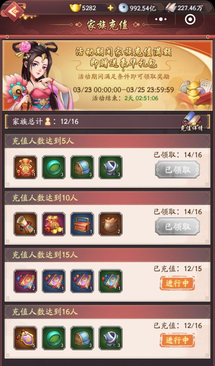 求助!关于家族充值这个活动?