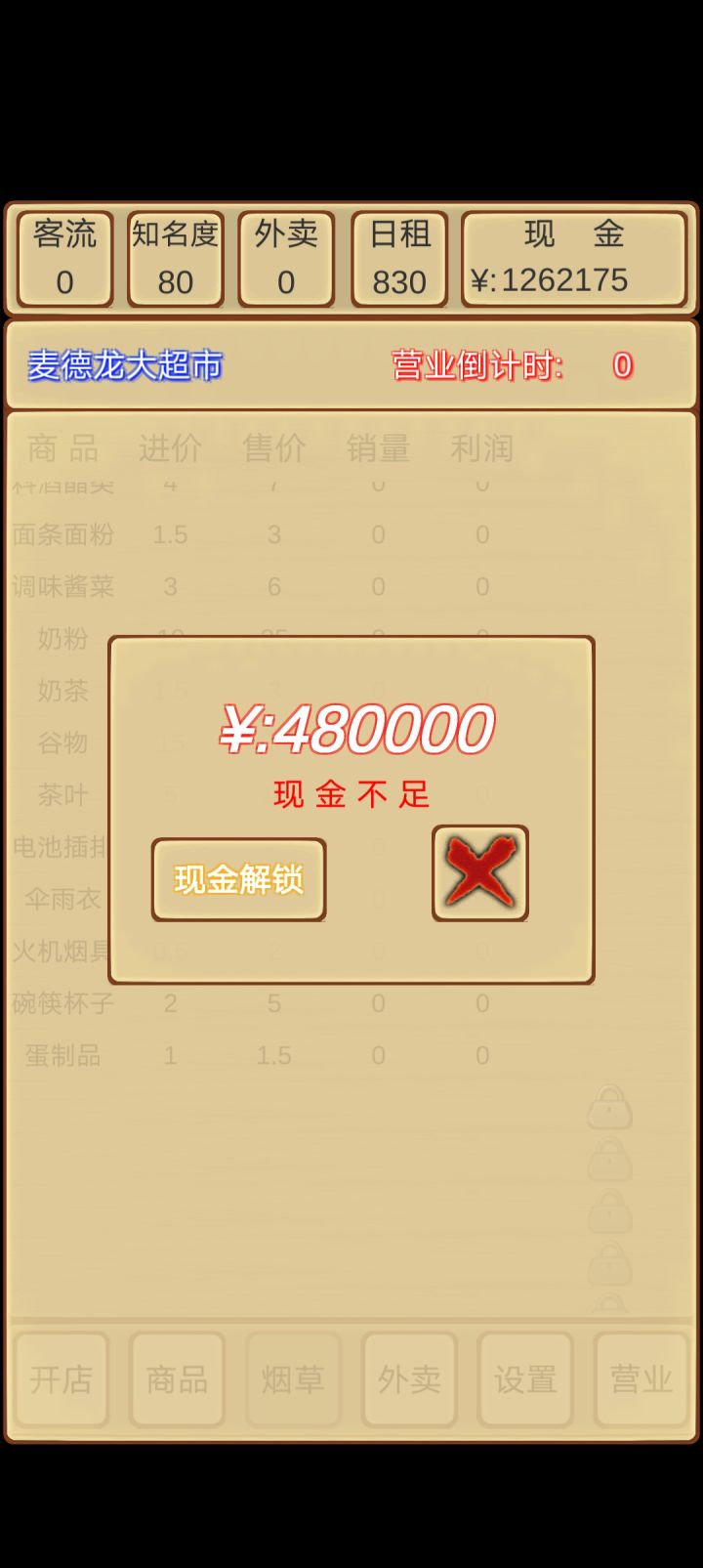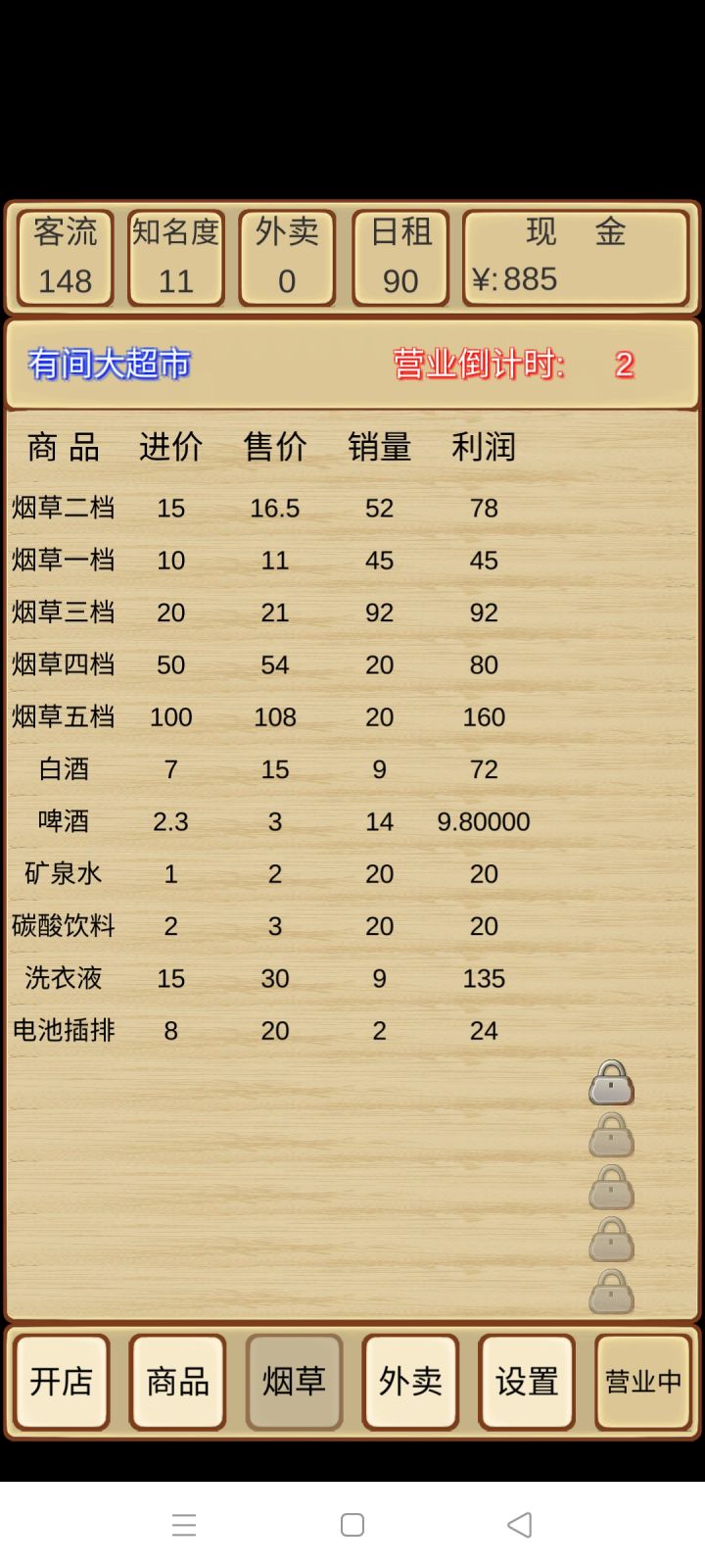 整体来说比较无聊,要是加点事件就好了,比如客人买矿泉水然后说过期了什么的,给几个选项然后给点奖励。