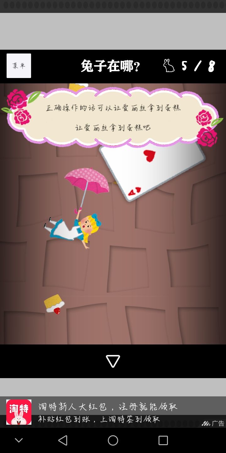 抄袭可耻,谢绝抄袭开局(放图是因为没有图看起来奇奇怪怪的,懒得加水印和裁了,就这样吧)白色柜子左侧第二格获得硬币,到旁边的粉色游戏机投币后玩游戏(要把提示点完才会开始游戏,每一次所需的蛋糕数量都不相同,我玩了3次,第一次19,第二次20,第三次9)获得螺丝刀,右侧摆钟胡萝卜2413转至左侧画面,桌子上有一张红心9H,书页左下角4可推知左画为6,右下角9可推知右画为7开局画面右侧,中间白色