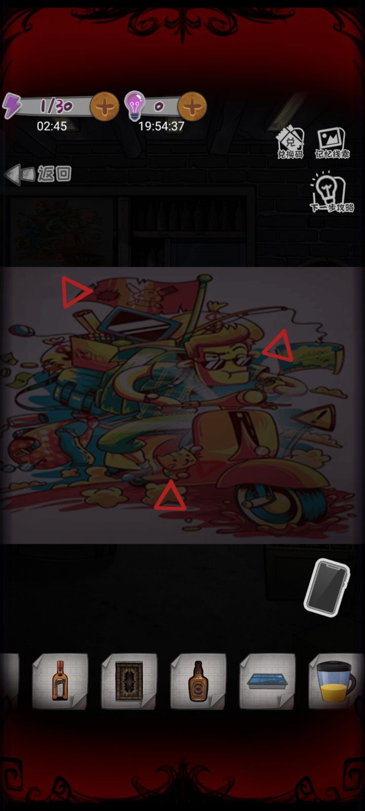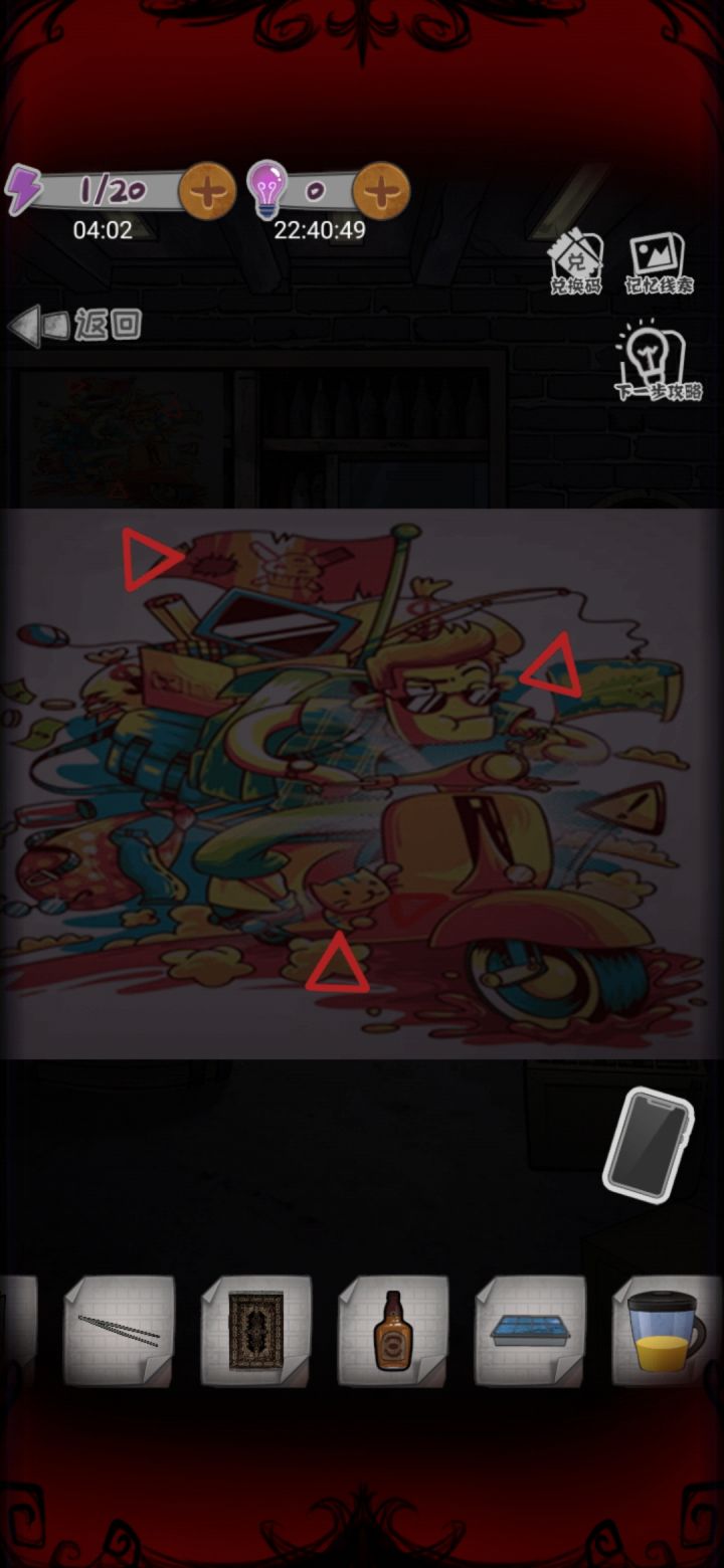 这个按照截图第二三四张这样转,慢慢调就出来调酒瓶了按照△的指向转第一个转到男人的眼镜,嘴角那个弯是向下的第二个转到旗子上的补丁第三个转到猫咪的屁股上面注意,是△的指向
