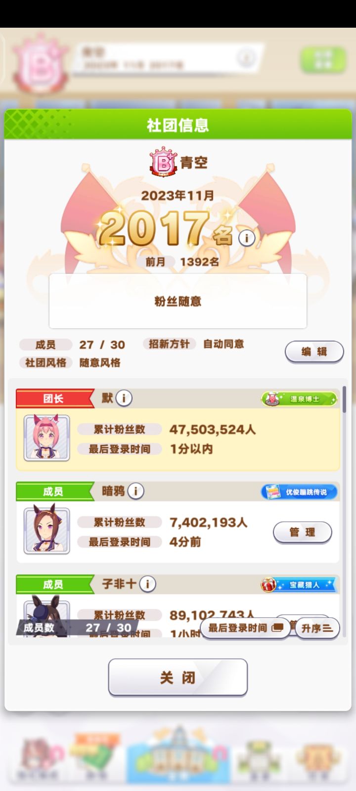 闲聊:社团目前正在转型当中,准备往上冲一把,目标保A争A+,之后再做打算~上个月被不活跃状态的人耽误导致直接从B+掉C 对着尴尬的300萝卜沉默住了…会长很厉害,每天300w日活带头卷,会长,带着我们再冲一次吧!()要求日活尽量100w不强求,最起码每天养次马发下捐鞋子请求互刷积分,定期清不活跃的人,社团好对大伙都好。小伙伴们都很友善滴~!具体要求:1.日活越高越好,尽量100w,也