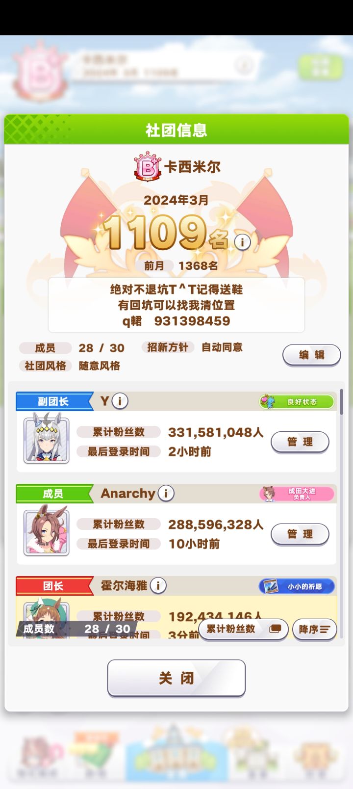 想要一直不会退坑的小伙伴~不要求粉丝数,只要多上线就好,社团会一直在不用担心社长退坑哒!q群931398459(非强制社长id,可以搜索然后直接进社团ww352009170742#赛马娘#赛马娘国服