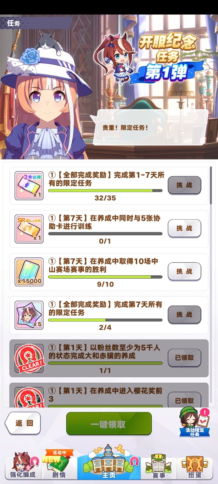 先上图氪度:创号9个月,活跃时间3个月不到,除了最初花了不到30,就没再花过钱,个人感觉可以不氪金肝度:每个月月初有一次固定活动,大概三四天,每天养完两三次,日常做完,可以免费获得一张满破ssr支援卡,强度肯定上不了T0.T1,但是完全够新手和零氪党用了,可以看到,楼主的志愿卡几乎都是活动卡。楼主也就活动期间活跃些,其他想到了可能会来看看,个人感觉不是很肝。抽卡:200抽可以换一个当期up,