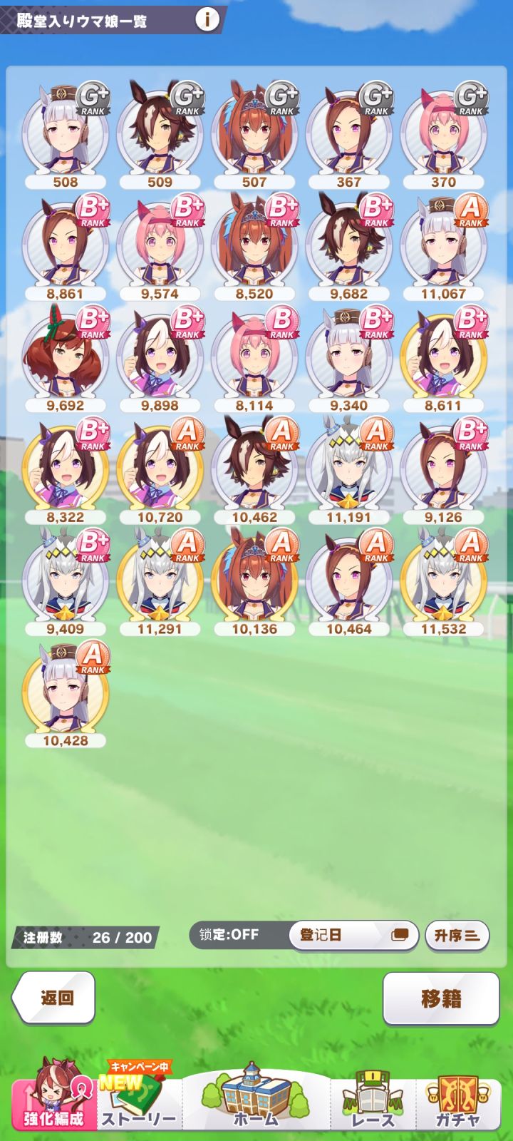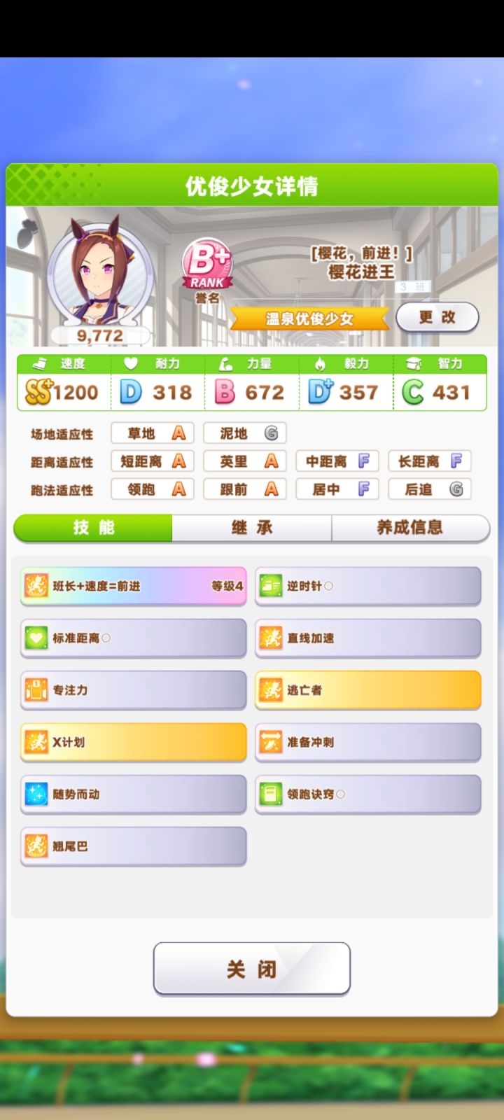 玩了一个多月了,建议大家还是刷初始号好,最好3破,然边赛马边抽大不了井,北黑已经过了可以借,八重也不错,这号我自己转生玩了6天了,其他的就是开局哪里人多点哪里,几个支援卡有良马场/弯道回复/末脚的技能都要点,北黑八重这两个技能都很不错,剧情第三章想玩差马的也要整。看最后一路超越跟飞起来一样每天就刷完自回体