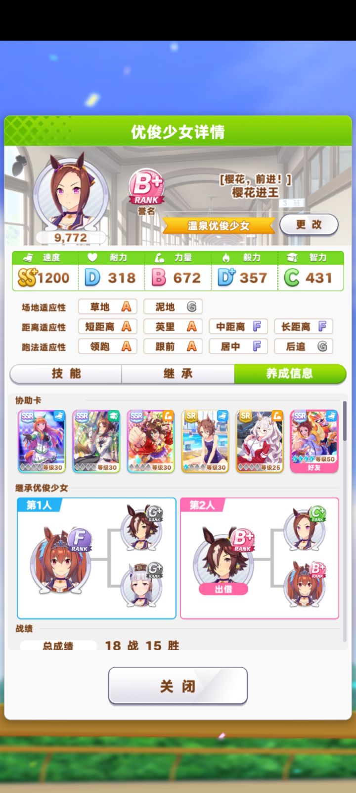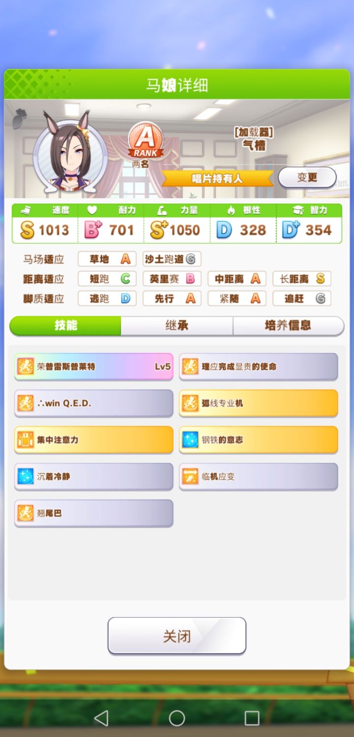 b站上的咸鱼的进化和咸鱼的进化赛马娘也是我(>﹏<)。0氪金双s力速还是不难的,而且我这个是2星气槽,一点也不强,种马是别人的9耐马和自己的5耐2速马。要点和依据1.出道战前哪里人多点哪里,刷羁绊和绿帽心情。绿恶魔第一次碰到她加一次心情,第一次除非3个人扎堆,否则一定绿恶魔。2.主速副力练习,力量的练习已经加了耐力,气槽没长距离比赛,所以不带耐力卡。3.借大佬的满破北黑非常重要,这个卡很强。
