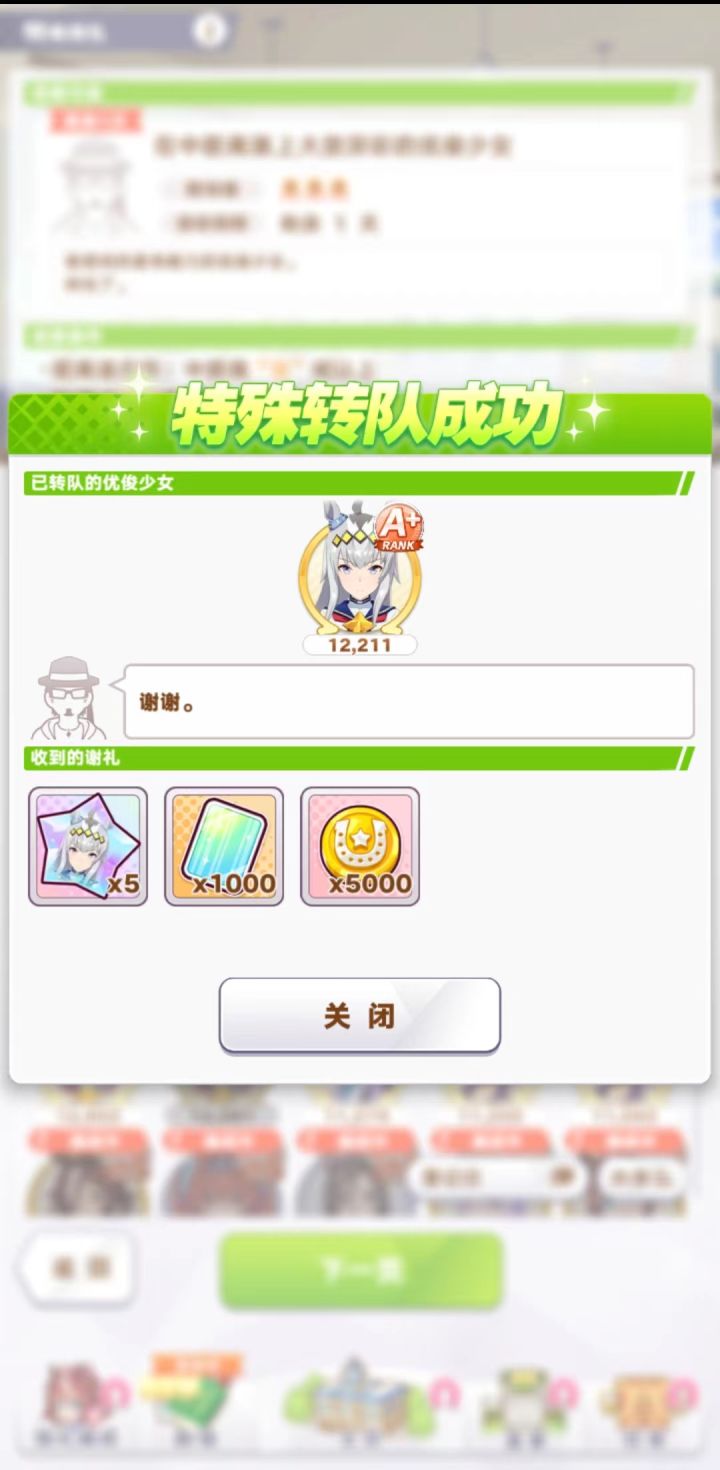 国服活动叫特别转队解释:特别移籍是把符合募集目标的成品马娘换成碎片条件:募集项目会对马娘的能力、战绩有要求,满足条件的马娘才可以进行特别移籍期待度:期待度越高,奖励越好(三星任务奖励是提供的成品马娘碎片)期限/次数:特别移籍有时间限制和次数限制,超过时间或者次数为0,则无法移籍#攻略#闪耀优俊少女#闪耀优俊少女攻略#游戏日常