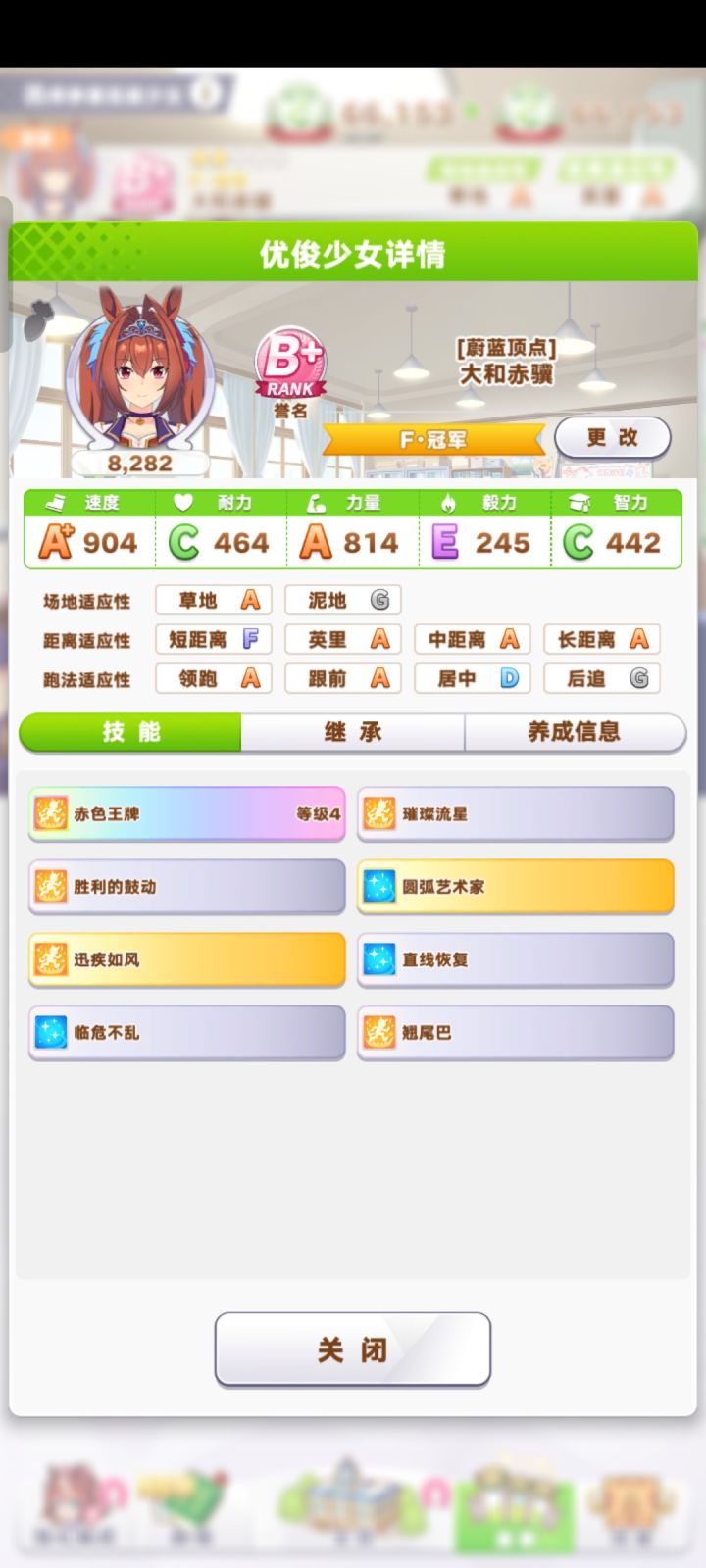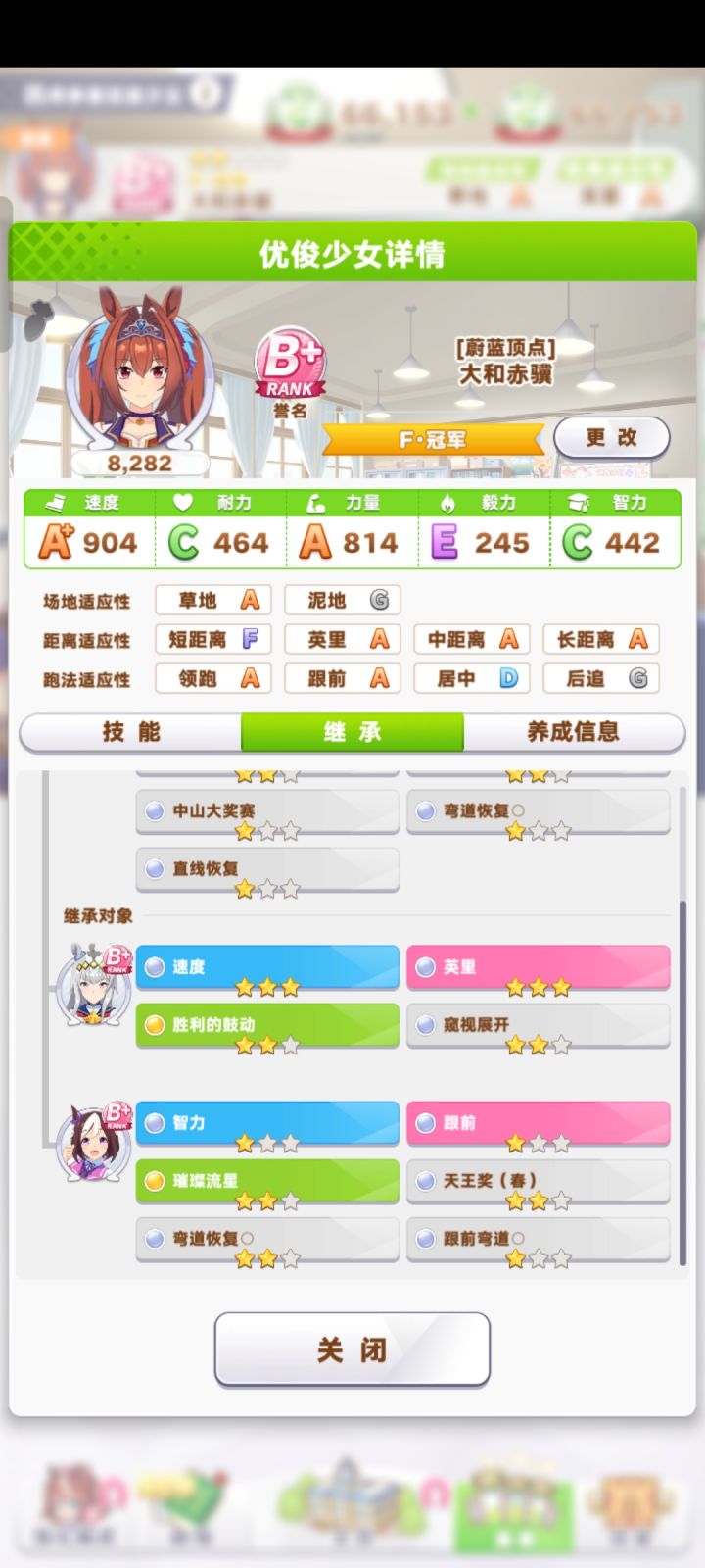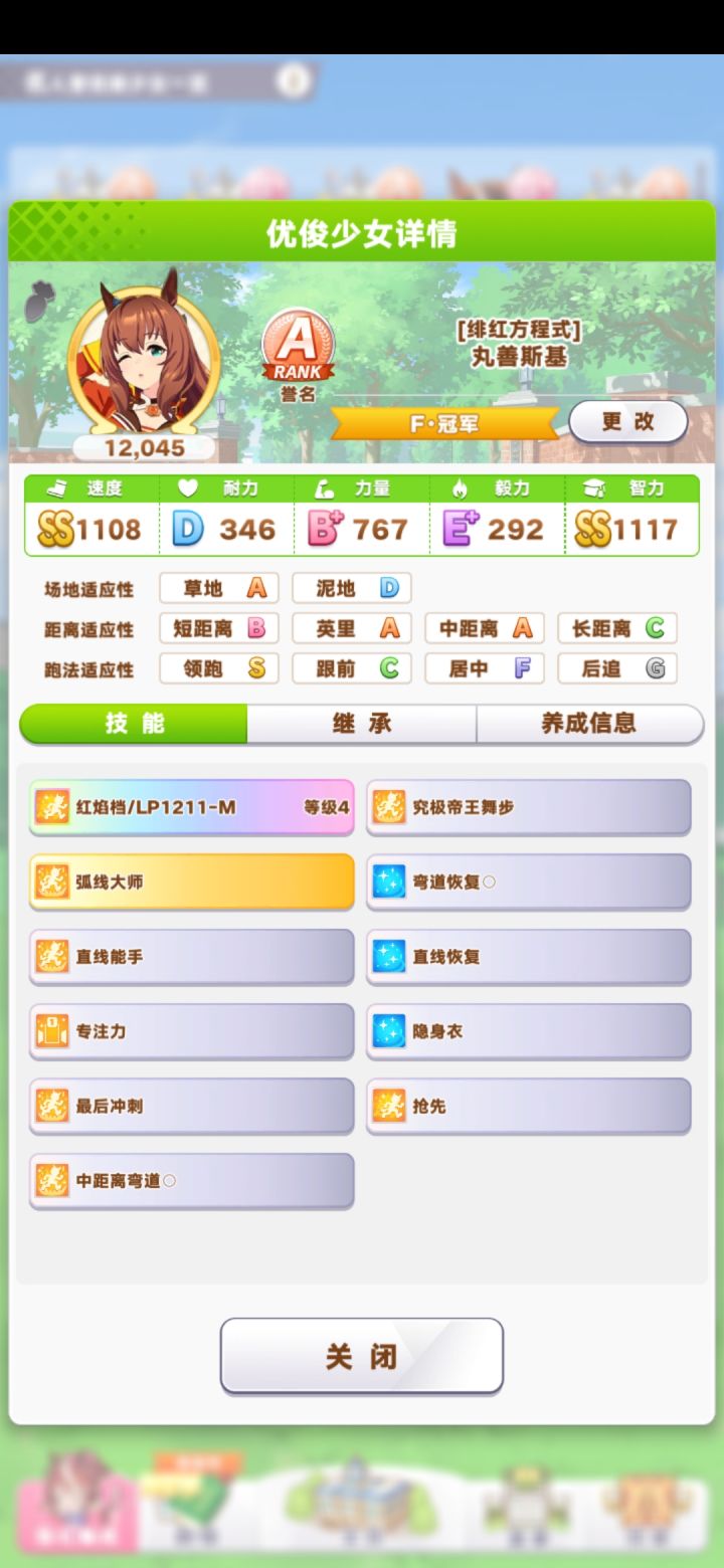 大和赤骥其实是ura不怎么好跑的马娘,比较容易掉干劲。爸妈选择:没有好爸妈,就选了加速力的爸妈。配卡选择:二速二力一耐一友加点思路:前期主点速度,因为前期都是英里赛。英里赛跑完,开始慢慢点力量。保证速力差距不是太大就行。最后ura的时候,速力可以达到a,就稳了。智力在ura之前最好点到300以上,要不然技能真的不好释放。备注:耐力卡个400,参加最后的中山就差不多了。前期的比赛 不
