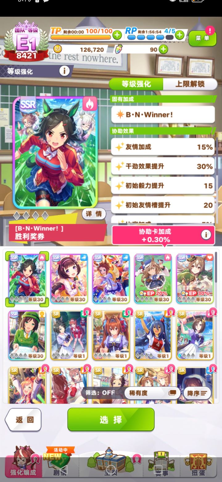 哇,血压拉满了。支援卡基本全t0SSR,开局因子加66速,小栗帽。一路上赢的都挺好的,速度快破1000了,最后一场一直第3,用了俩闹钟最后跑了个第8。。。哇,血压撑不住了。这是我哪里搞错了还是最后一场就是拼运气的