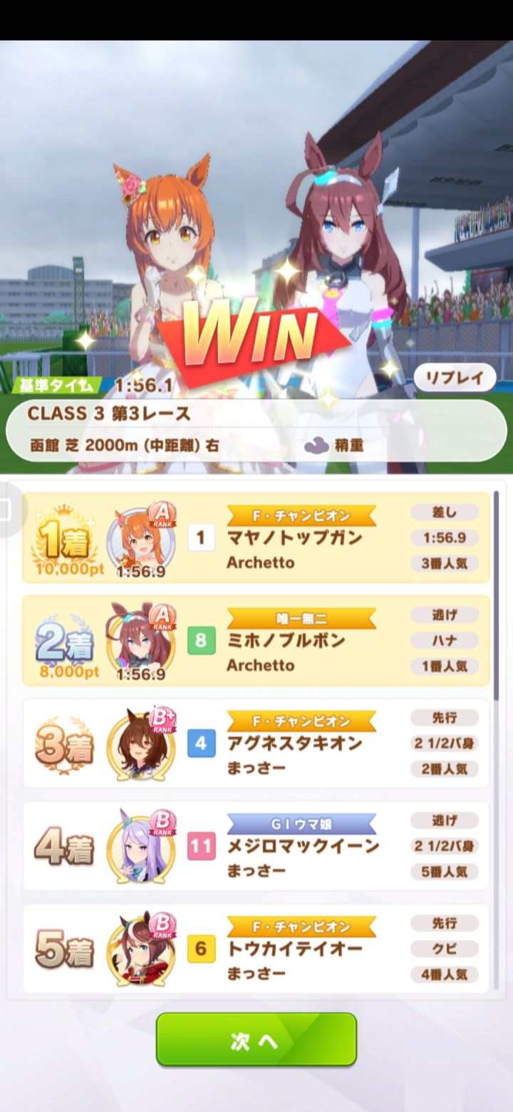 谈谈感想:这个游戏莫名有趣,对赛马一点都不懂的我居然啃着日文半翻译半猜的玩过来了,一个多下午都在玩。因为这个马娘和我xp就一直玩她。这是我第四次玩这个马娘,本来以为能够过最后一次有马纪念就不错了,谁知道我最后一次有马纪念第一次就1着,接下来ura全部1着,我看着视频每一次都血压飙升。我来描述一下比赛情况,我选的逃那个位置,基本次次都是刚开始冲出去第3,然后中间回体力技能保持一下速度,快要到终