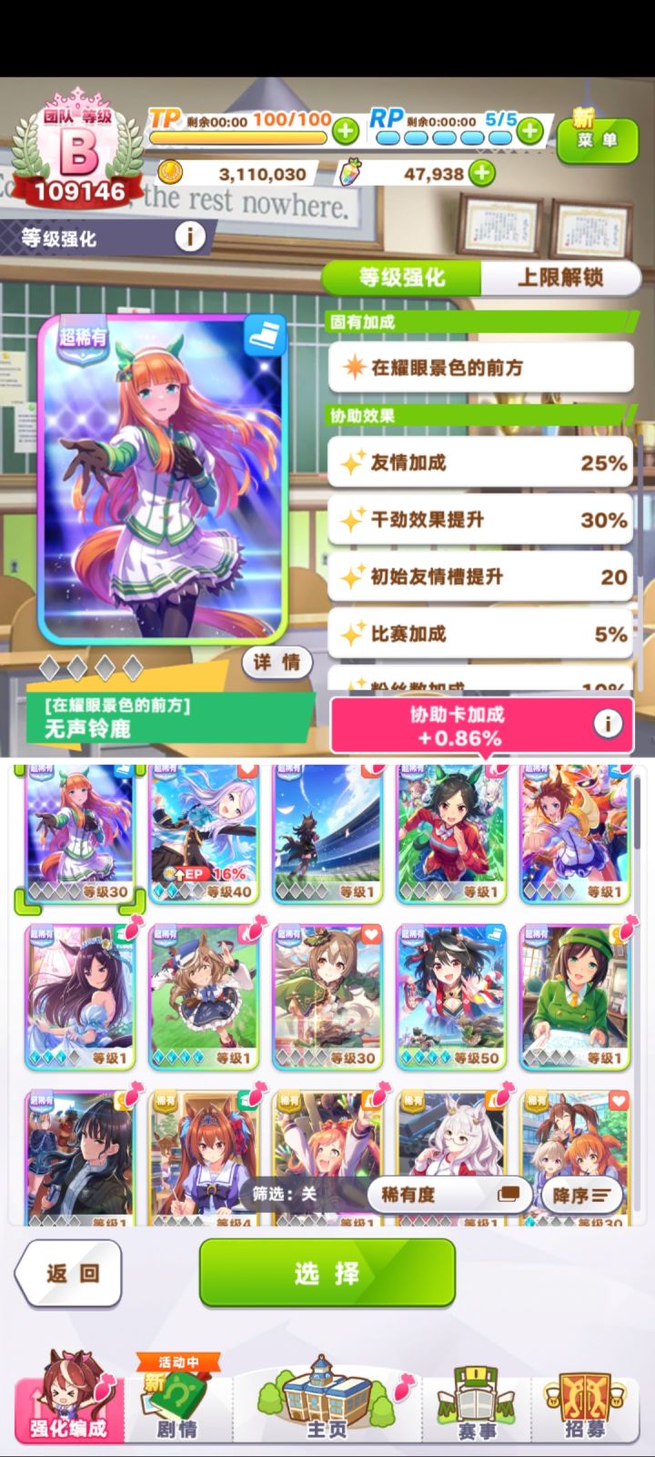 玩了2778个小时肝到等级B了 话说这个游戏0氪能玩吗 等级最高是啥啊#闪耀优俊少女 #游戏杂谈