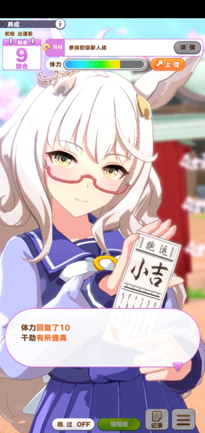 唱卡拉OK可以让干劲连升两段,但是体力一点也不加。而其他外出干劲升一段,体力少许恢复(有些时候正巧就差那么一点儿)有时干劲普通了,急需要连生两段的时候,希望能去唱卡拉OK,但就是遇不上。有些时候只需要升一段心情,顺便补一点体力的时候,点外出就遇上唱歌。