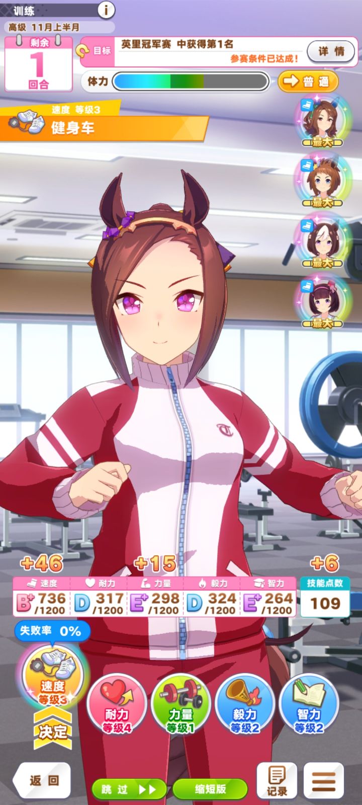 1.首先是耐力,好多人一开始就养米浴和皇帝这种,但经常卡在菊花赏和中山,典型的耐力不足,赛马只练速度是吧。以下列出一些赛事的耐力要求,根据蓝色技能的数量和参赛时马娘的心情可以适当减少,且以下数据纯属个人经验,仅列出比较稳的数值,不保证全对,如果有误,当我没说。天王赏春(万恶之首)要求大概550菊花赏要求大概400(实际感觉是不到400的,但是400是稳过)中山大奖要求大概350之后中距离
