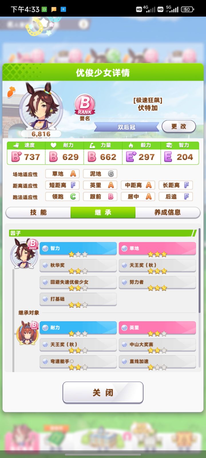 蓝因子是看有一项属性600以上,然后5项属性里面随机给对吧?(可能出现200多毅力的给3星毅力因子是吧)粉因子只看是不是A以上,然后从A里面随机给。乌拉拉全程练逃,但逃不是A所以不可能有逃因子。是这样理解吧?不管我是常用哪种跑法,盯着跑哪种场地,学的技能符合哪种场地与跑法,都不会增加获得该因子的概率。这不像我以前我玩的三国志等其它养成游戏,盯着一个兵种练,就能加该适应经验,练多了赵云也能带弓