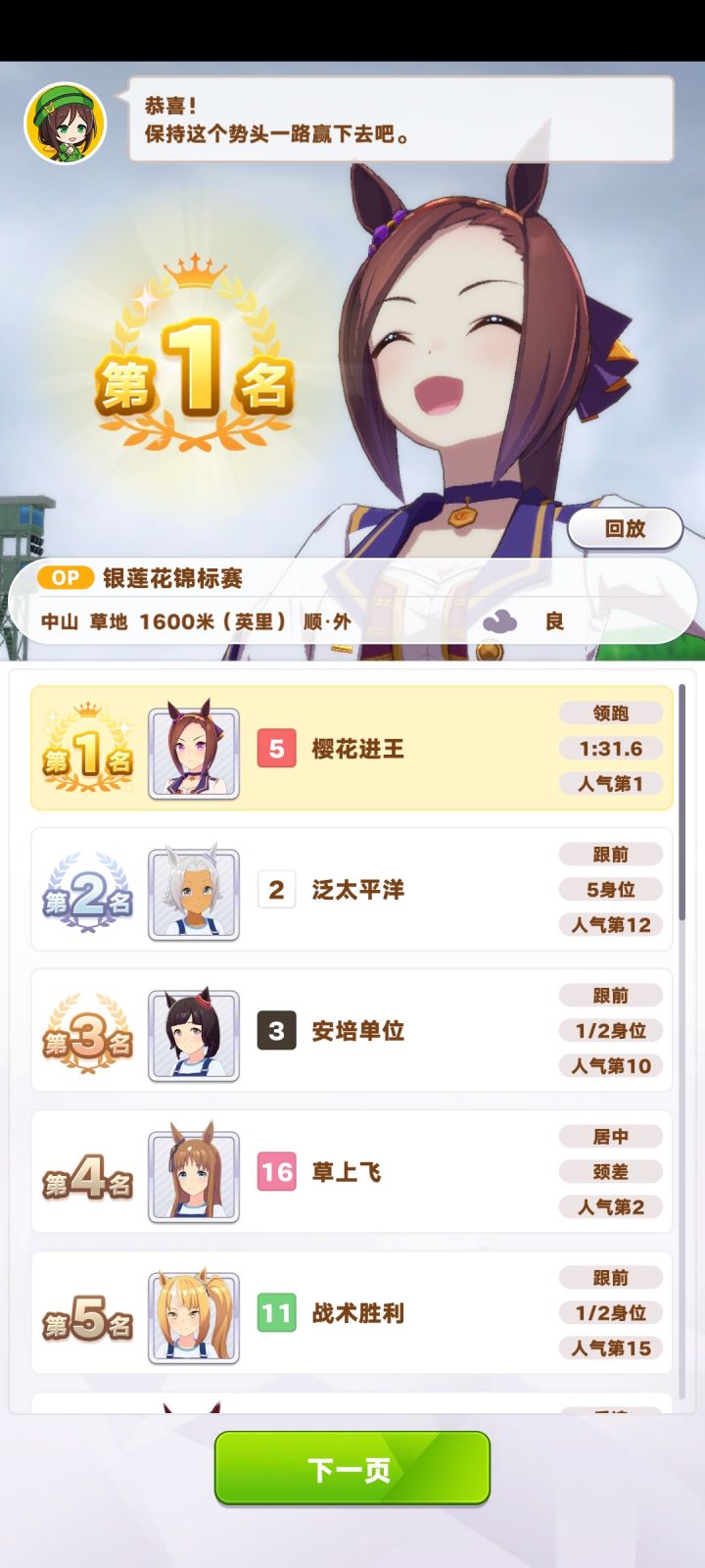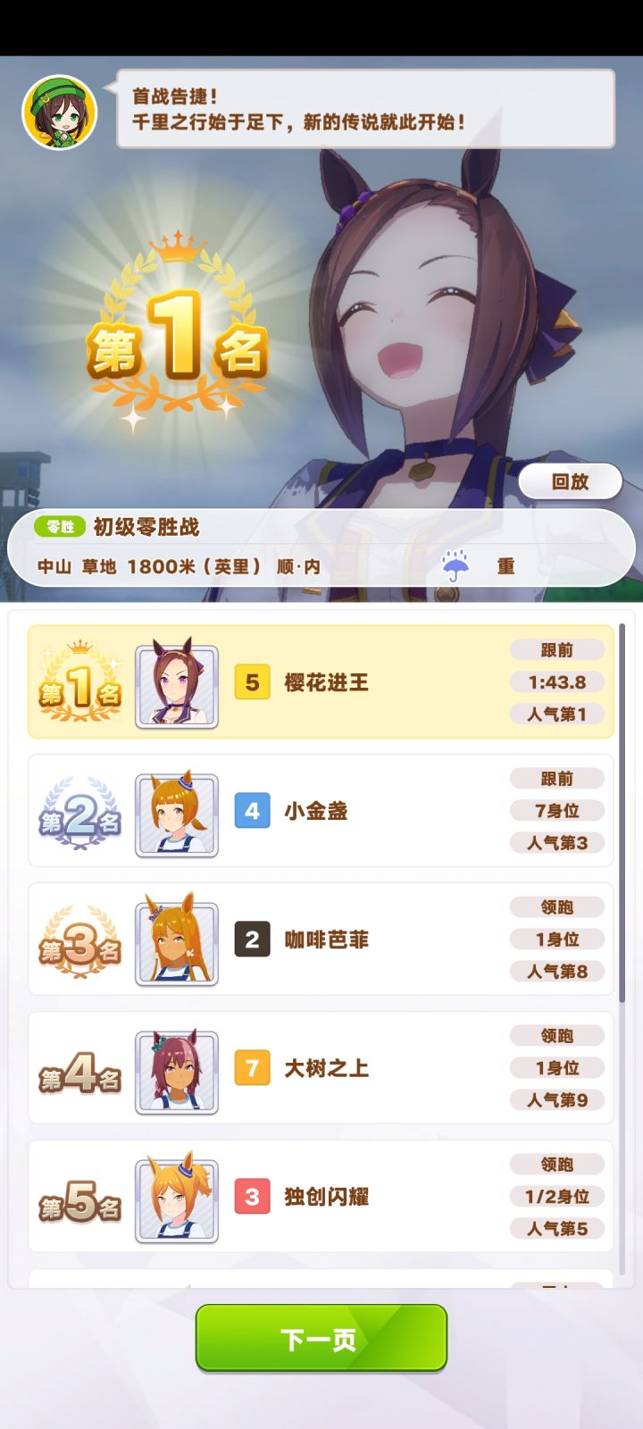 全国的新人训练员们,来认识一下那些在特雷森学园和我们一起实现梦想的学生吧! 凡事都必须马上付诸行动、勇往直前的班长“樱花进王”!针对短距离赛事训练出的无敌速度让她自信能冲到所有人前面。 CV:三泽纱千香