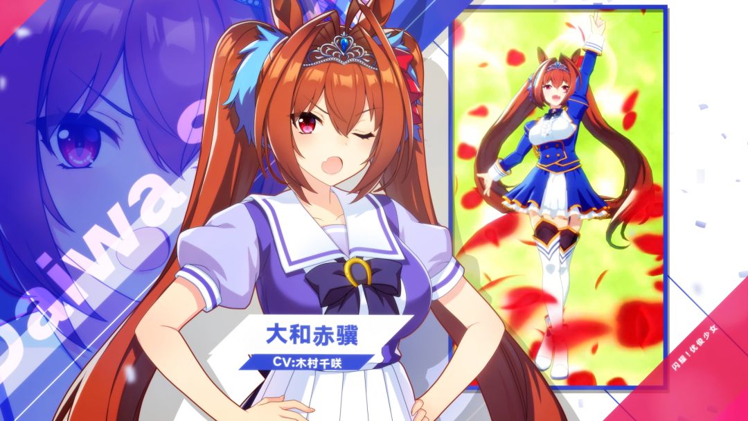 全国的新人训练员们,来认识一下那些在特雷森学园和我们一起实现梦想的学生吧! 表面上是学园里非常受欢迎的乖巧优等生——“大和赤骥”!但其实非常不服输!对室友伏特加总是抱有竞争意识! CV:木村千咲 前往预约:https://game.bilibili.com/pd/yuyue