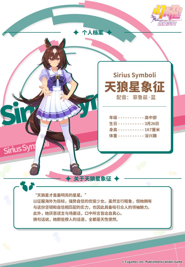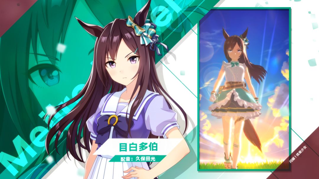 全国的新人训练员们,来认识一下那些在特雷森学园和我们一起实现梦想的学生吧! 冷峻干练,却不擅应对男性的害羞优俊少女"目白多伯"。在敞开心扉的对象面前,才会隐约展现出亲近他人的一面,偶尔还会流露出些许寂寞的神情。 配音:久保田光