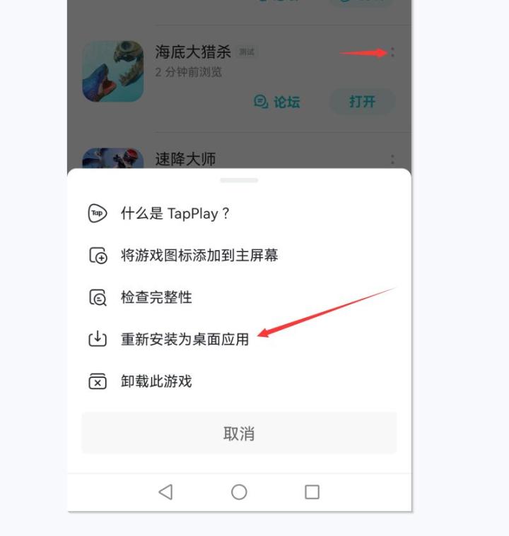 新版TapTap进不去的方法,亲测可行找到游戏 点右上角两个小圆点,打开然后重新安装为桌面应用 就可以了。我的华为荣耀反正这样可以进去。我的TapTap是最新版的测试版Beta