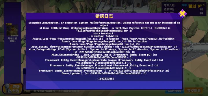新手教程一开始,刚刚布置第二个英雄就报错了。
