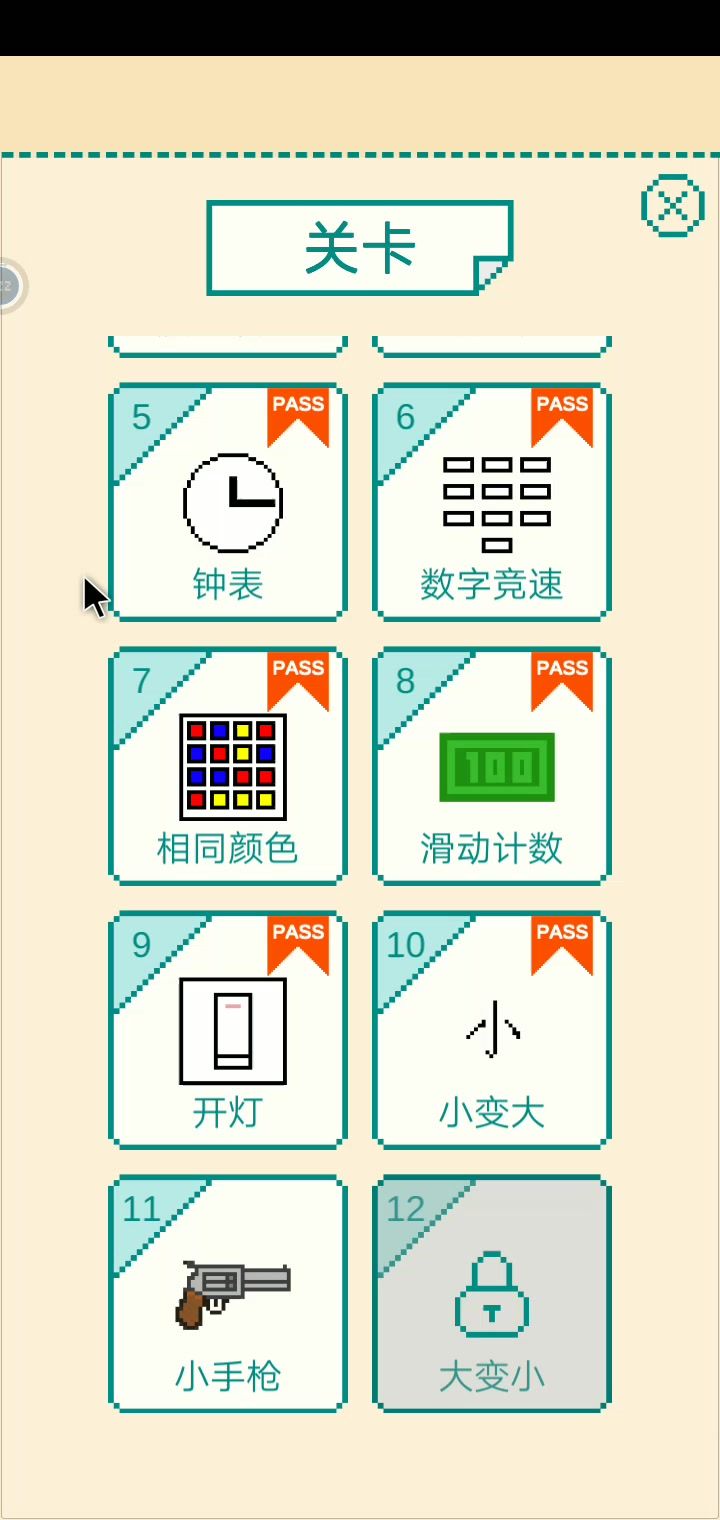 音游玩家,没用连点器,纯手打关卡解法(连点器可解用✔来表示,难度会标星,满星为五星):1关✔(★★):对于普通玩家来说,第一关就极为困难,不过对于音游玩家来说,这就是很简单的楼梯,不过时间毕竟有一分钟,并且一般难度和困难难度要求点击量不高,所以常规操作可解2关✔(★):这一关对于普通玩家来说很简单,并且要求点击量不高,而且可以多押,常规操作可解3关和4关✔(一般★★困难★★★):这两关解法