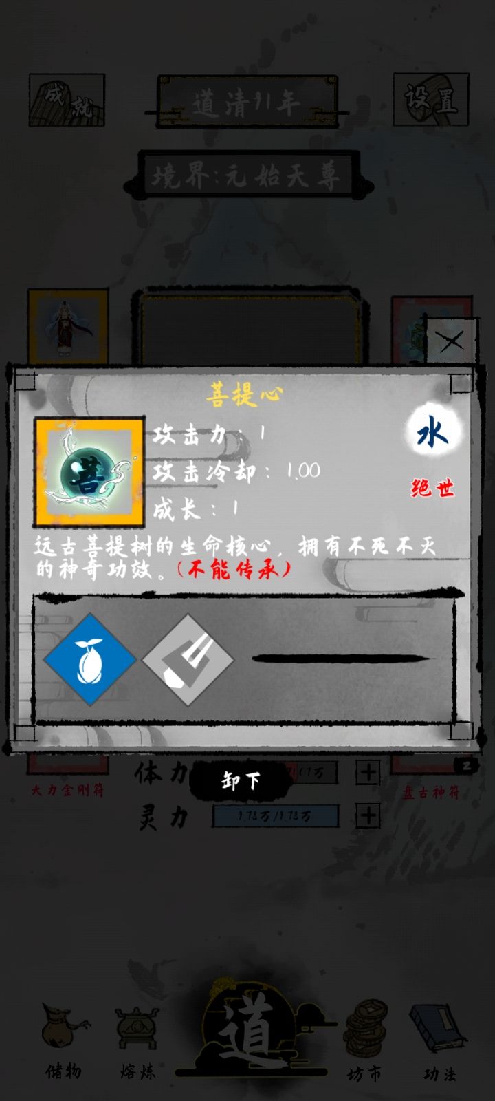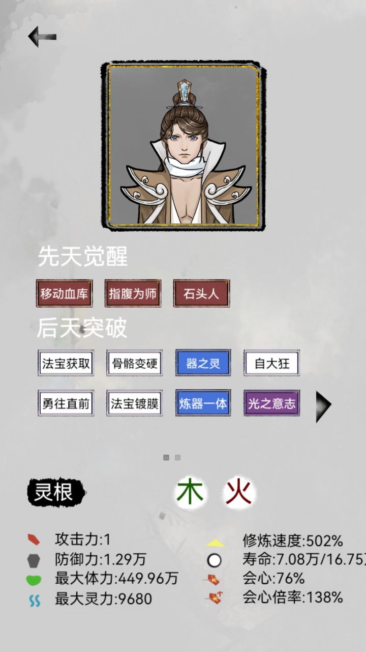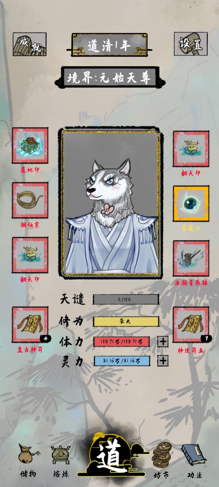 霸王神拳流派,攻击1500w,一拳加符和丹药最高35亿,建议送死九转丹刷属性,体力药和会心药还有攻击寿命药要到大罗或者元始再吃,打boss用罗汉符加速击符就能过。人物建议光头,天赋霸王神拳加护甲没有护甲可以不用,后天最好能刷到符箓道神和直面心魔。灵根可以单灵根以防脸黑老死,霸王神拳不需要法宝所以灵根无所谓。