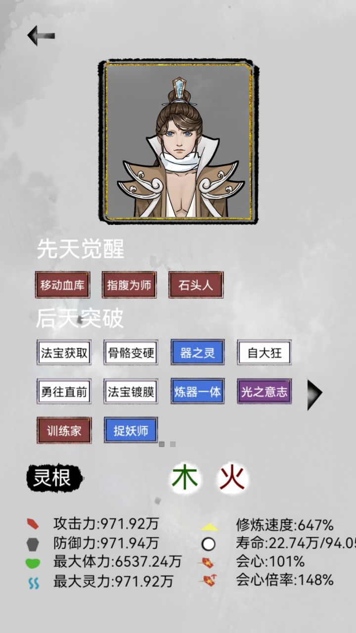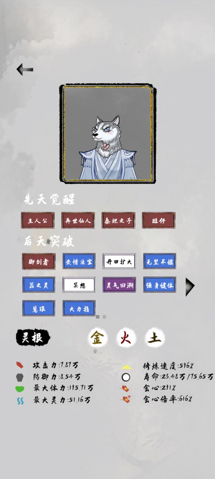 天尊劫有点坑,前面属性太强了,防御2000万+,血量4000万+,攻击可怜只有100万左右,根本打不动自己的天劫,只能死一次……谁知道死一次属性少了这么多……坑爹,还有几十万年寿命呢。这是渡劫后的的,渡劫前忘记截图了,只有张中期的图本来开始是想走对射流的,谁知道后面越来越歪,各种铁头功满屏的召唤物,离我的对射飞剑流越来越远了……