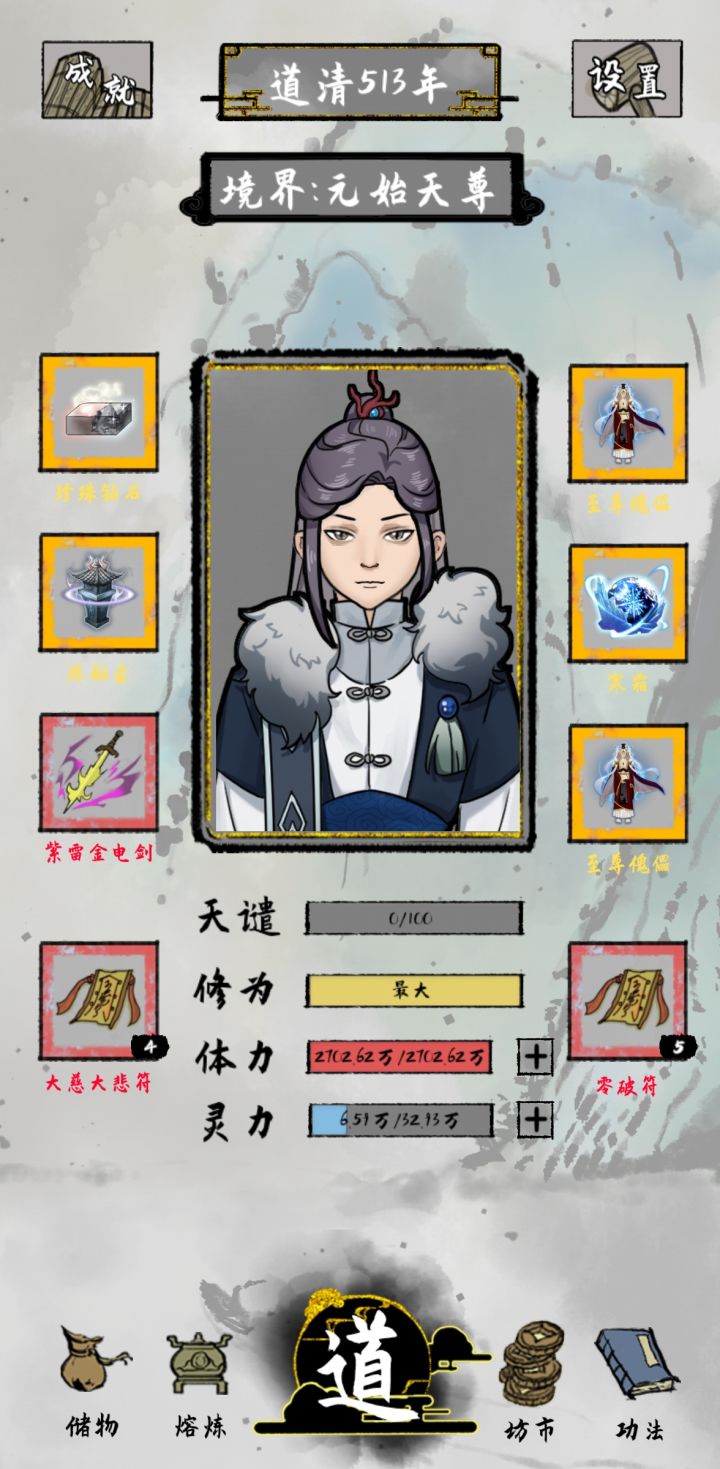 两个套路通关两次元始天尊也是会被寿命限制😔😭😭绝个人感觉萌新还是玩光头流,但没什么体验感,很容易上元始天尊。下次玩一下魔修