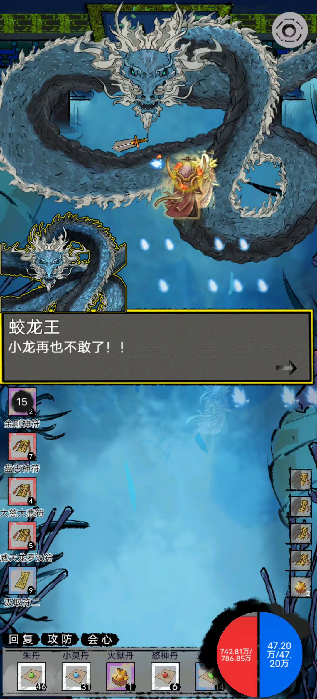 抽了一小时都没找到霸王神拳。。。破防了,不过这个游戏只要搭配好法宝就行了,血量有点点就行 那一两百万和一两万没啥区别,只要不被秒,我这一下100w伤害的0.05吸血就能吸满。越到后期丹药作用越少,像我这存档,要么我秒他要么他秒我,没时间吃药的,所以丹药多备用一些灵气就行