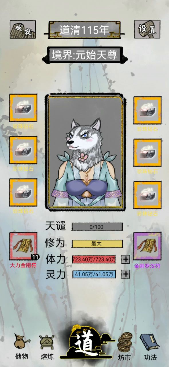 体修玩家请注意,防御很重要,宝物和各种灵气符都卖了换钱,体修打心魔记得带防御符,寿命寿命很重要。到天仙开始就屯石头等修炼事件用,不然太慢。玩了三天终于渡劫成功,太上无量天尊。