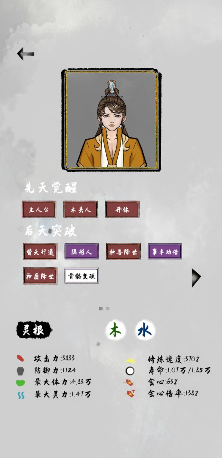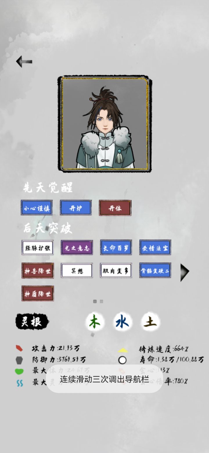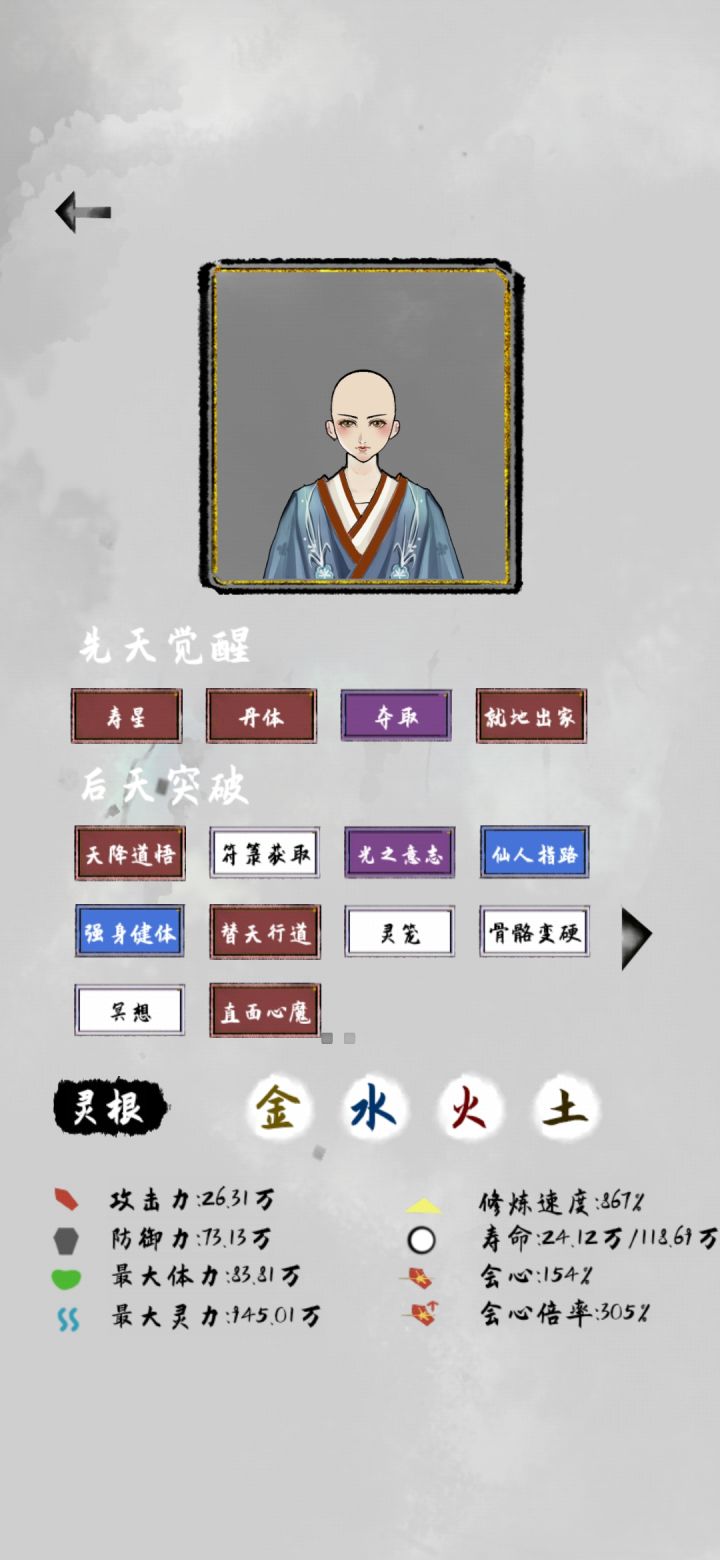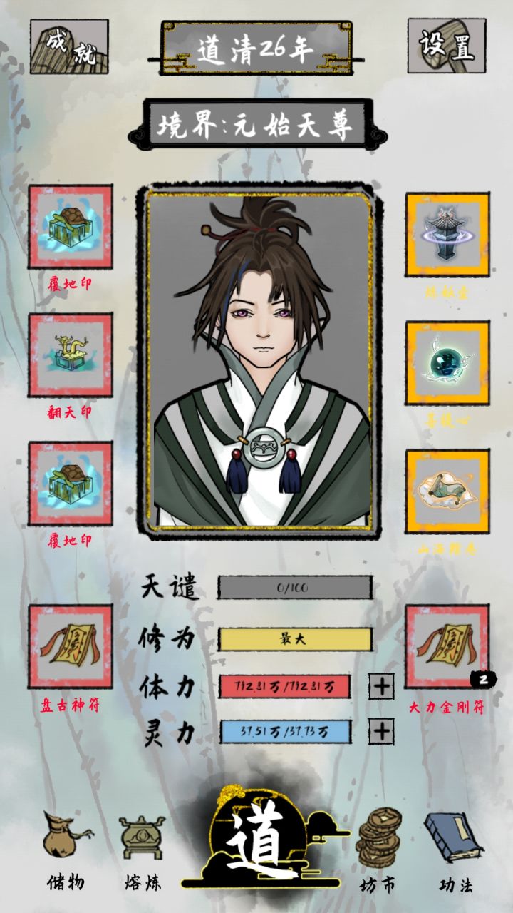 天赋:双生+大师、另外个随意 符咒:天尊(分身一个人物属性为1100%的boss)+吸血和无敌都可以 法宝:任意召唤物法宝(前期遇见boss才稳)+近站武器 什么东西都可以卖了或者留法宝合成好玩、寿命也不怕、就是无语突破到问道了也要扣寿命、