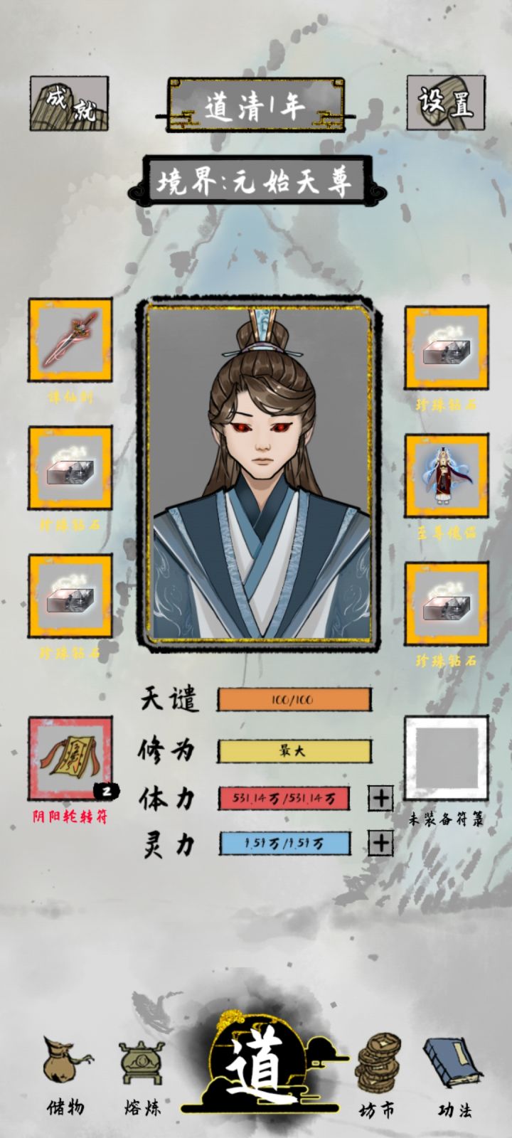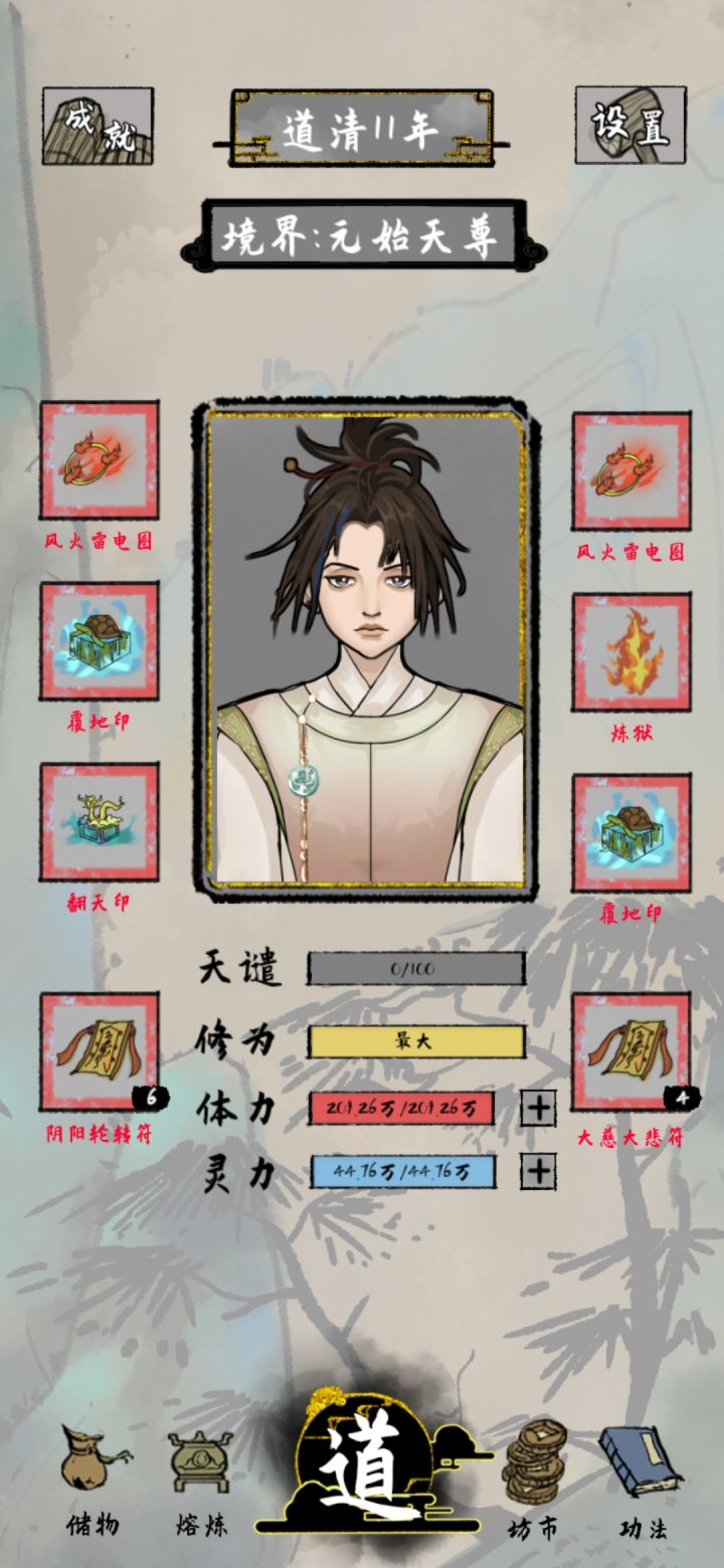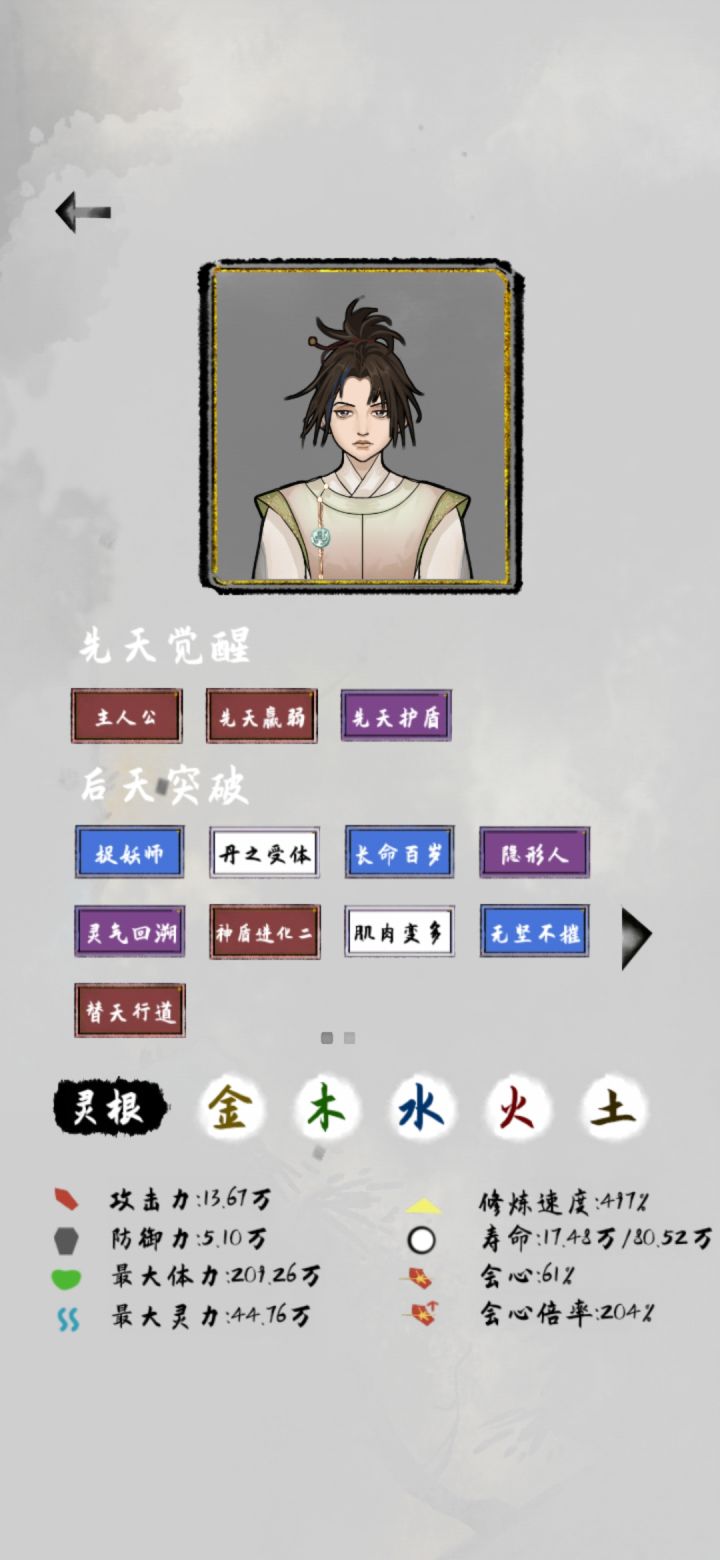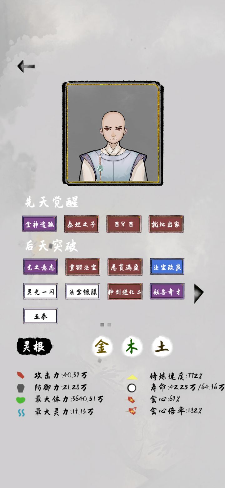 这个不是我最好的档,最好的那个档,是个漂亮小姐姐,灵根五个全有,修练比较慢,但是那个号拿到了两个上古器灵,金色装备,很强。