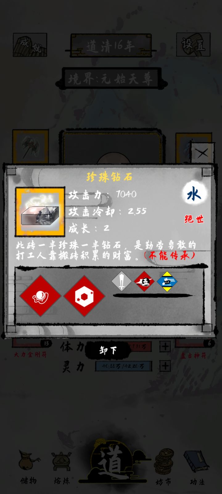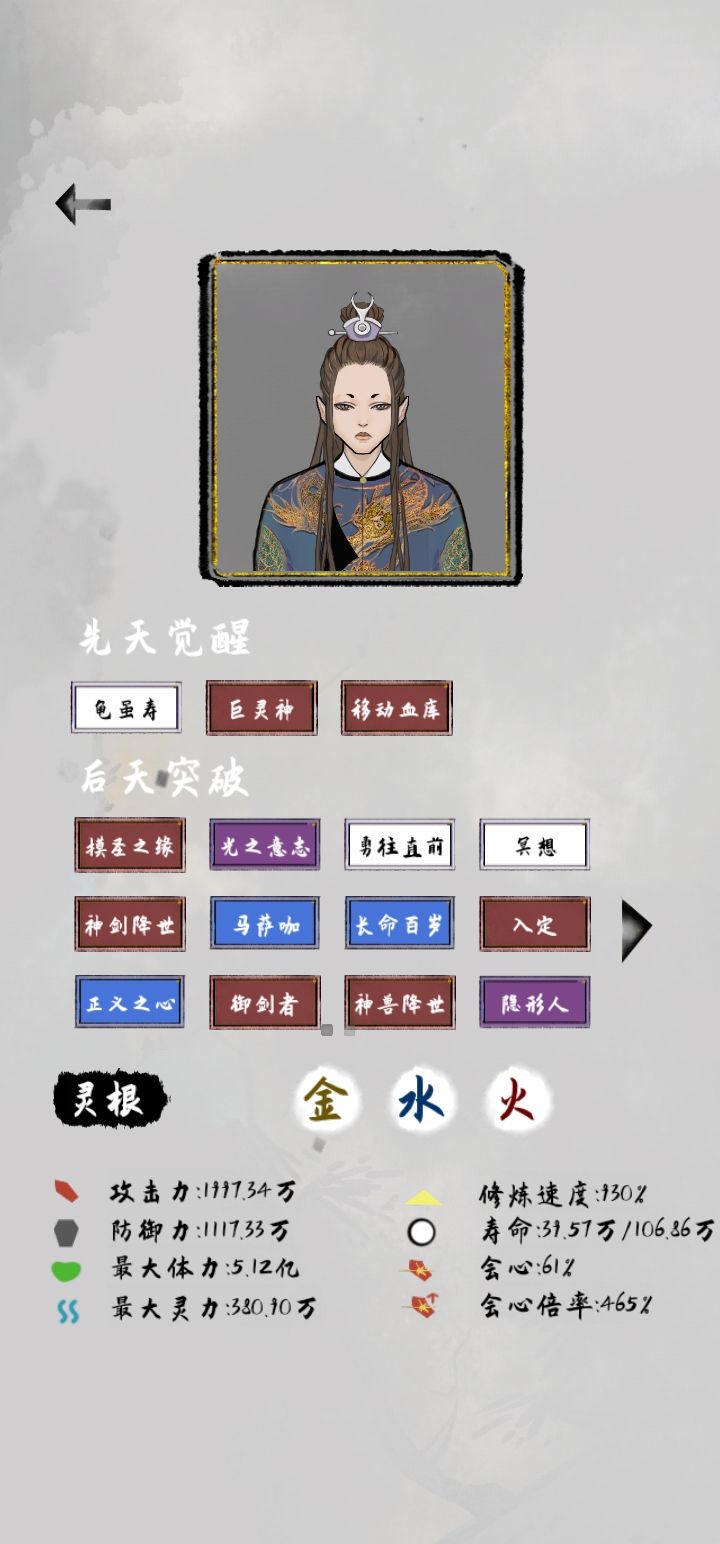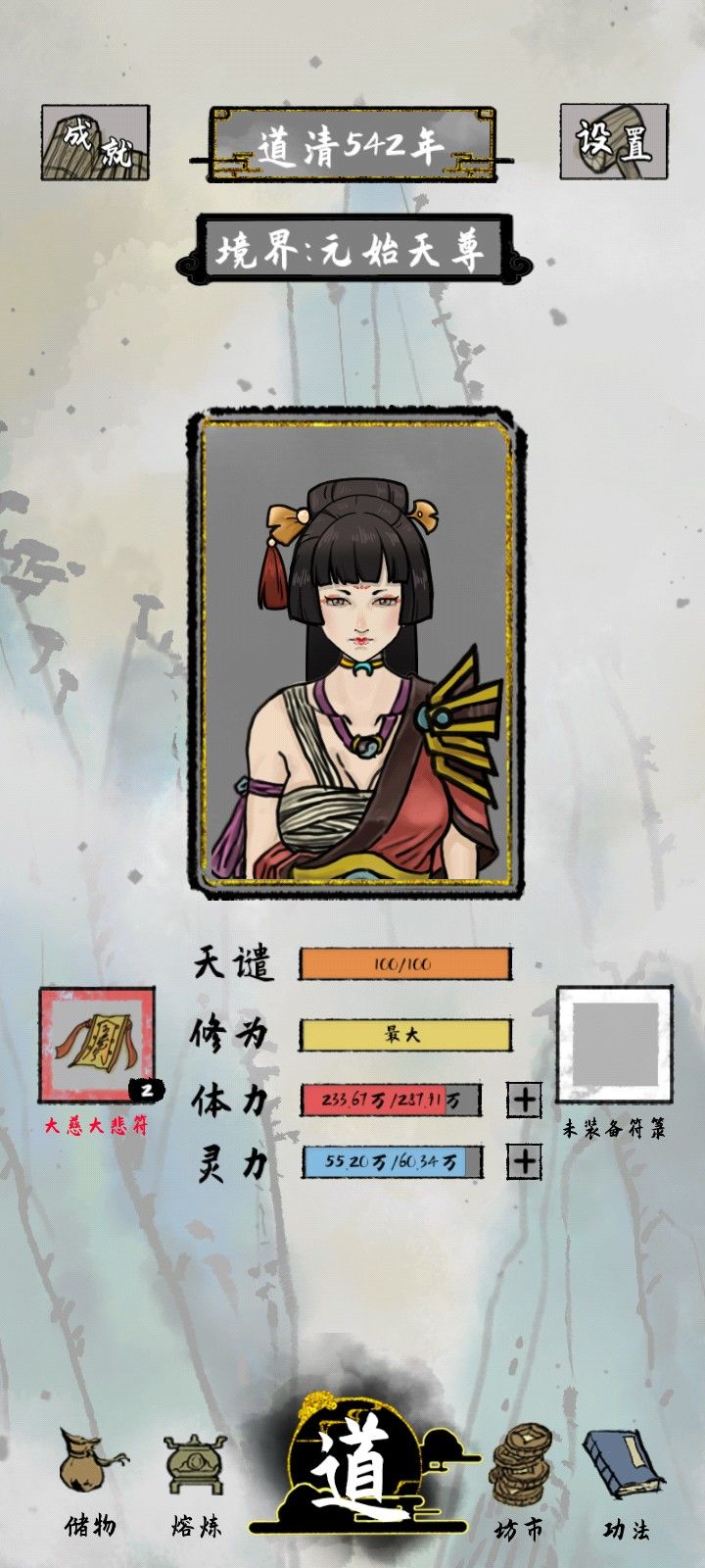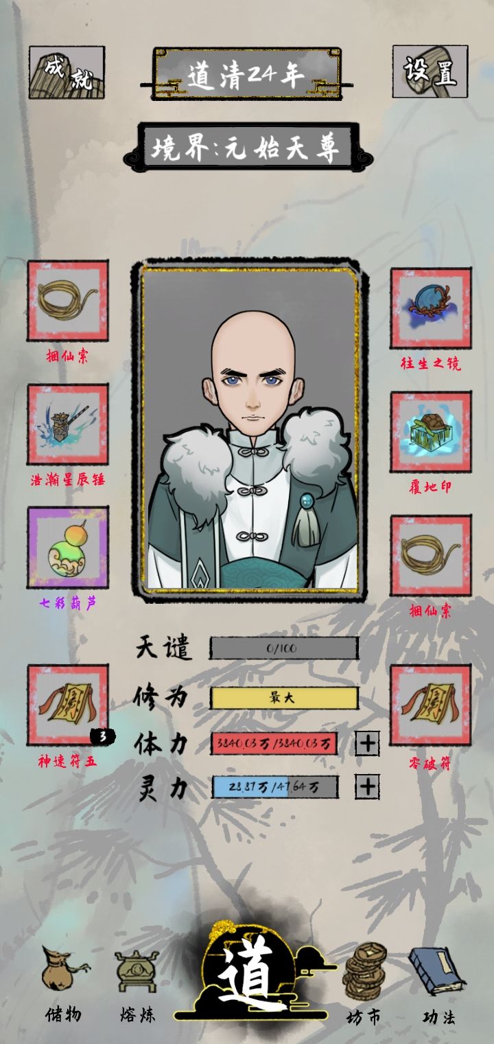 玩了好几天,今天终于到元始天尊了(还好有网友兄弟告诉我心魔怎么打,白装直接莽)虽然面板不咋好看,但我还是很激动的,希望官方早日完善后续剧情,挺好玩的,就是战斗的时候嗑药难点,手机太小,战斗时看药物介绍也难看清。还有功法感觉重复的好多,能不能卖了算了,而且功法也少,多加点武器倒是好评,反正我不研究一个小时我是配不出来好装,打发时间必备神器人物建模也可还行推荐指数四星半(五星满分)