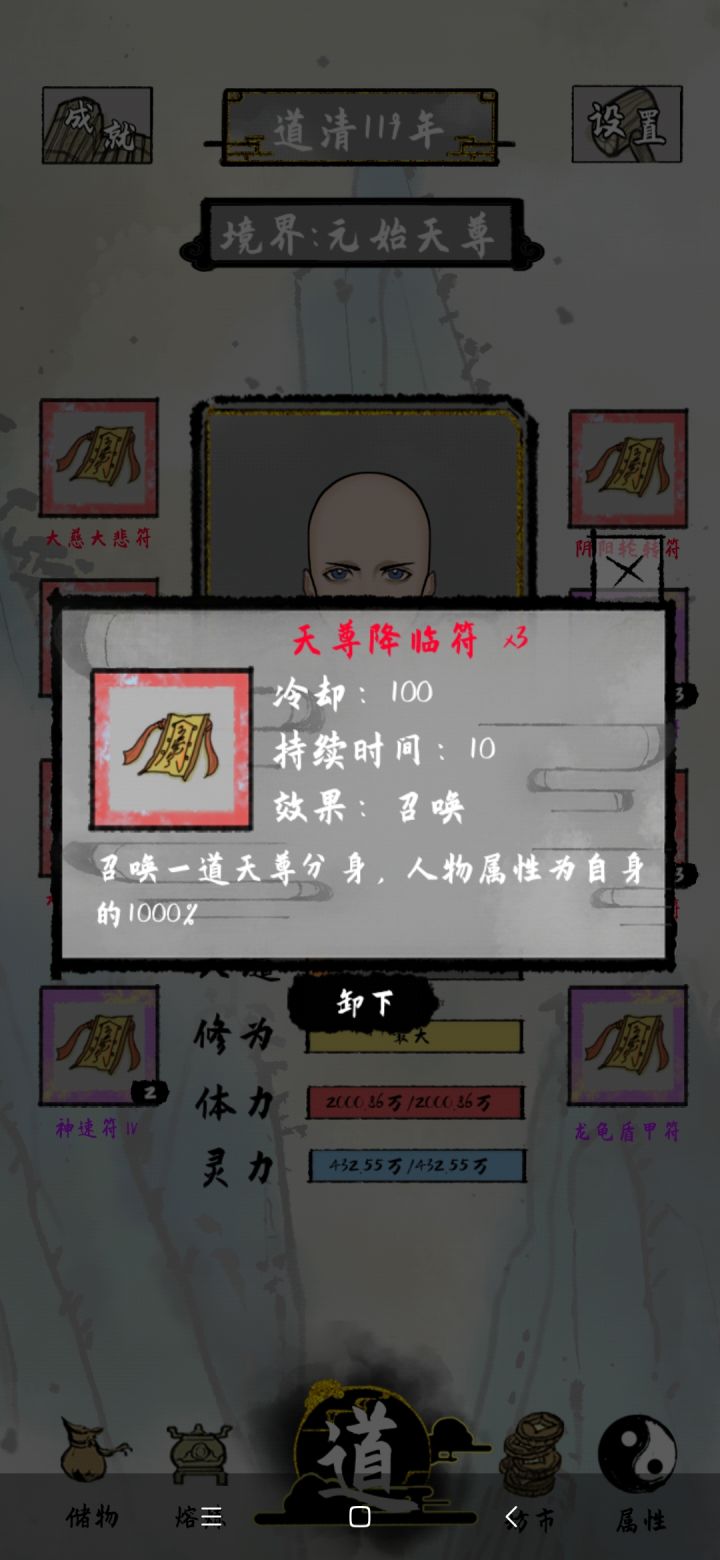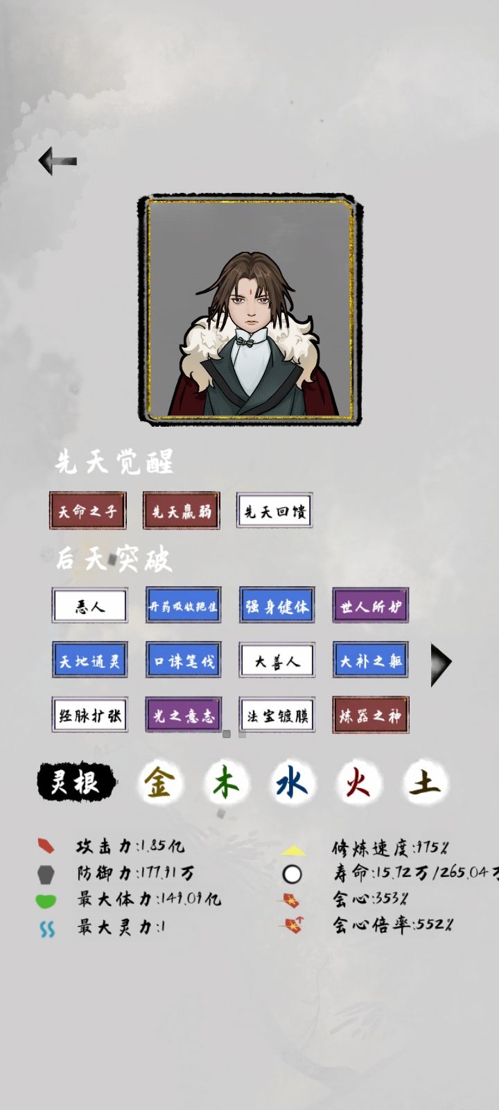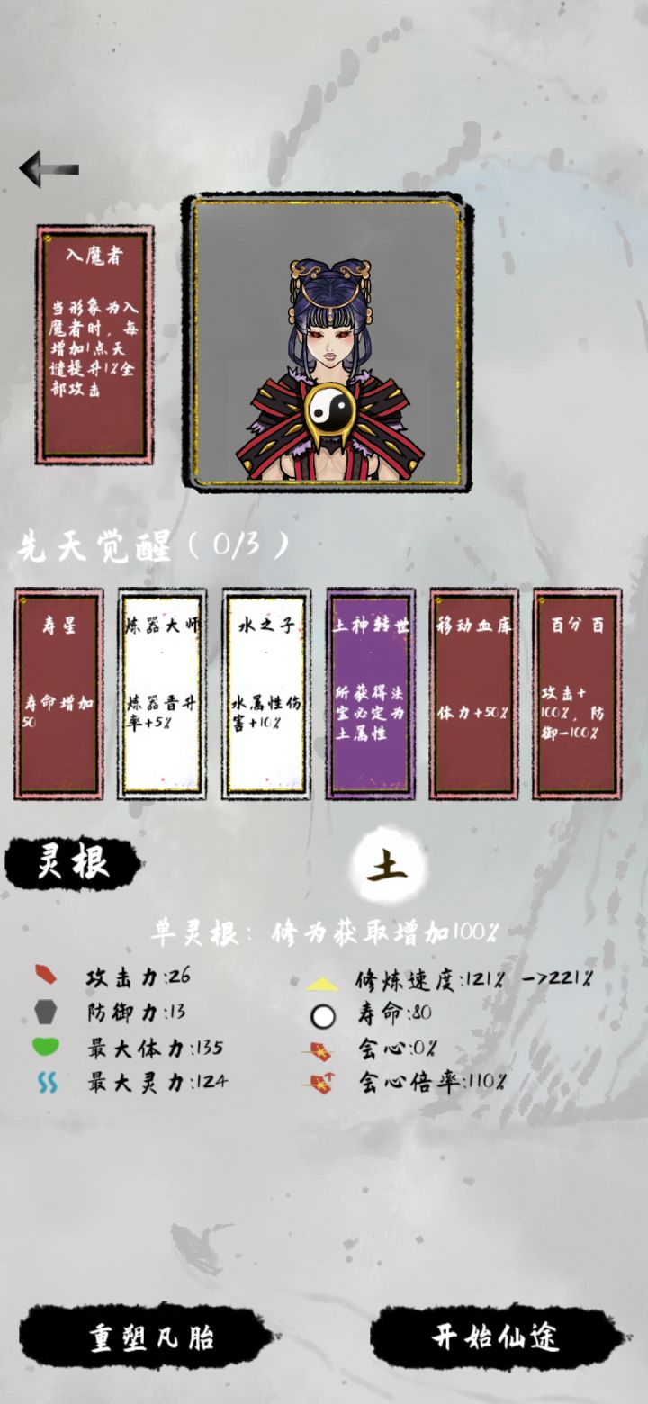 光头角色相对比较好刷出来一些,他的增益是加快修炼速度,相对的如果你加了天谴就会降低攻击。